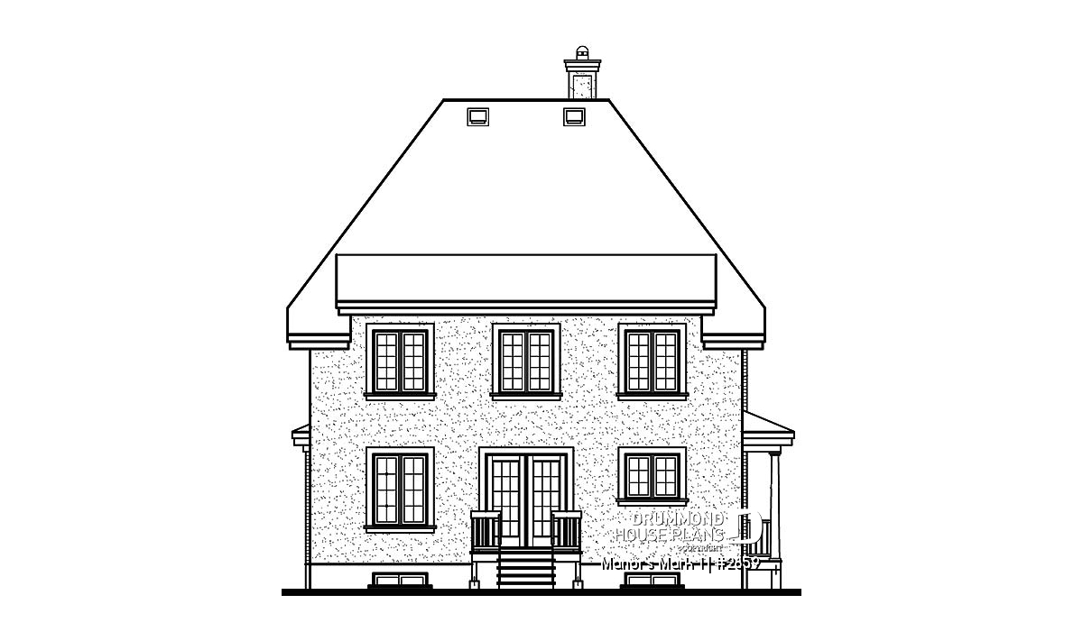 First designed to answer to the needs of a family of five including three children and for which each child must have their own room, this beautiful country manor also possesses the quality of fitting on a narrow lot, even when enlarging the garage from a single to a double; this certainly remains a big plus.