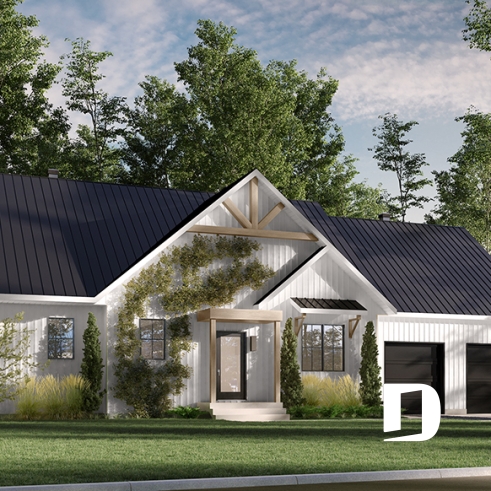 Best suited for a southern backyard orientation, we have kept the defining features of the original plan while offering new, more optimal and eco-friendly ideas. The house has been reversed to maximize the natural light and also to avoiding overheating. Two separate entries can be found in this plan: one accessible from the front for visitors, and another accessible via the double garage to facilitate daily life.