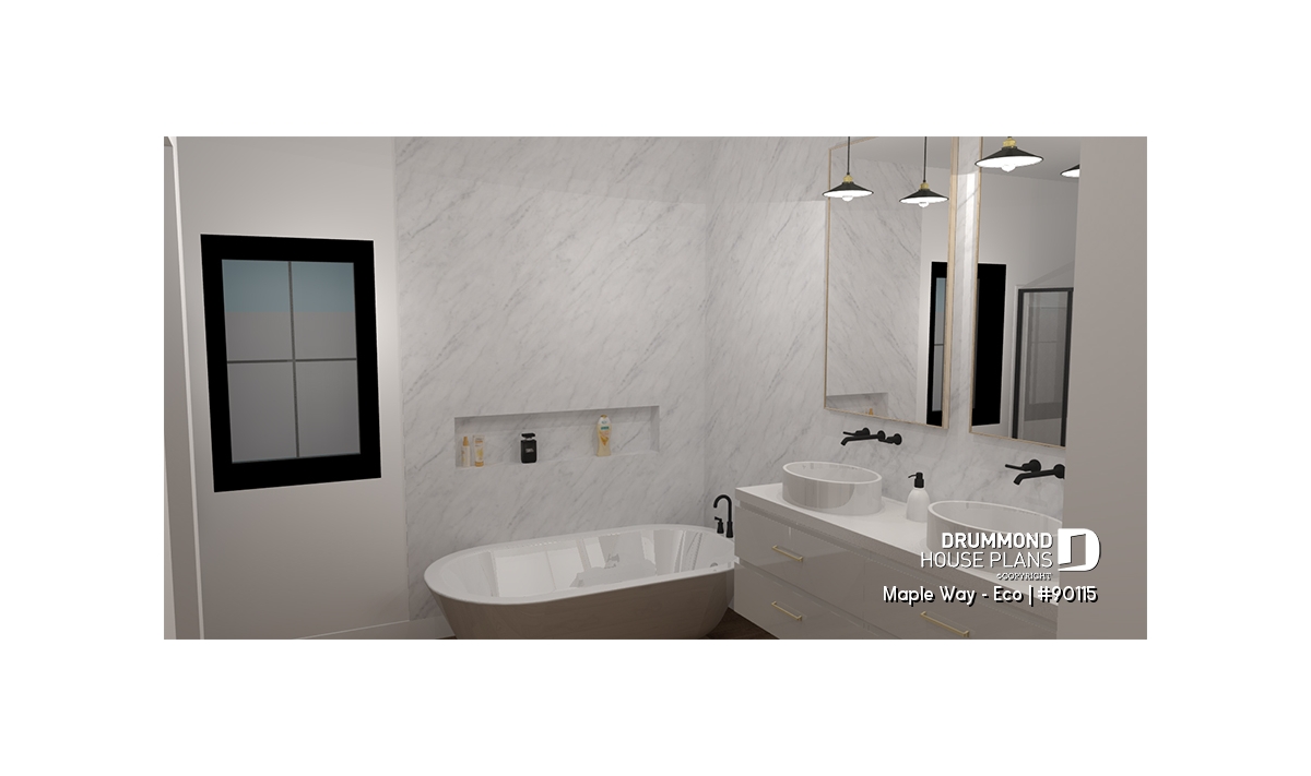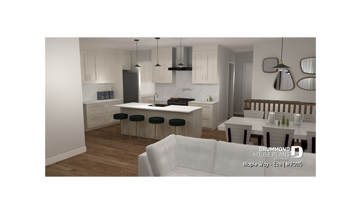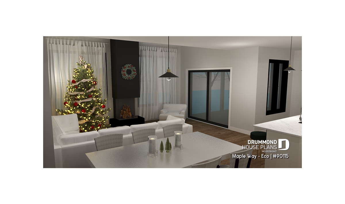 Inspired by the Maple Way (plan # 3287) house plan, our Maple Way-Eco is a revisited version. The windows have been revised to make it a passive solar house.
