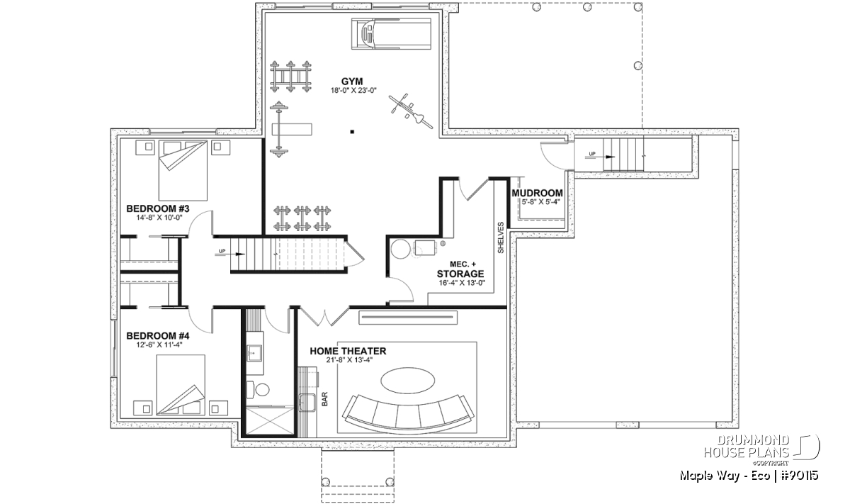 *If you wish to purchase the finished basement plan, as presented on this plan page, please select this option in the shopping cart, in the "Selection of foundation type" section. If you do not select this option, you will receive the unfinished full basement option, at no extra charge.