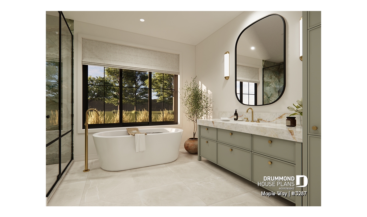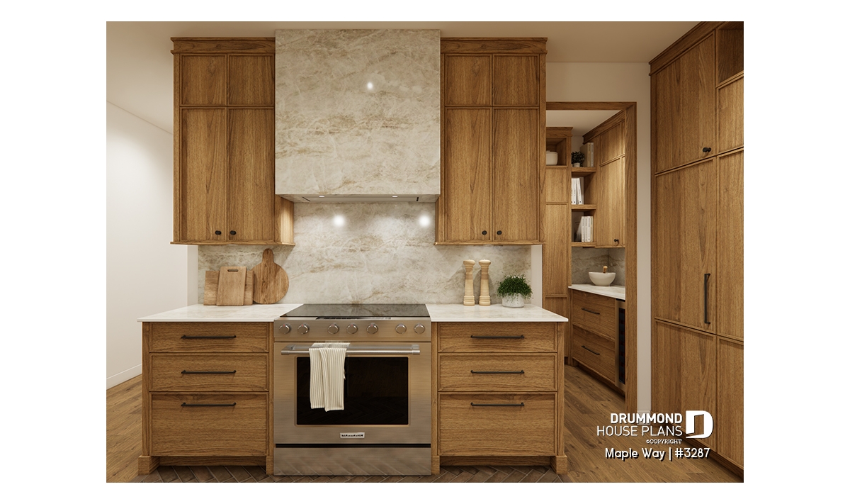 The 9-foot ceilings throughout the rest of the main floor enhance the sense of openness and light. A mudroom at the garage entrance makes everyday organization simple and convenient, connecting directly to the pantry and kitchen.