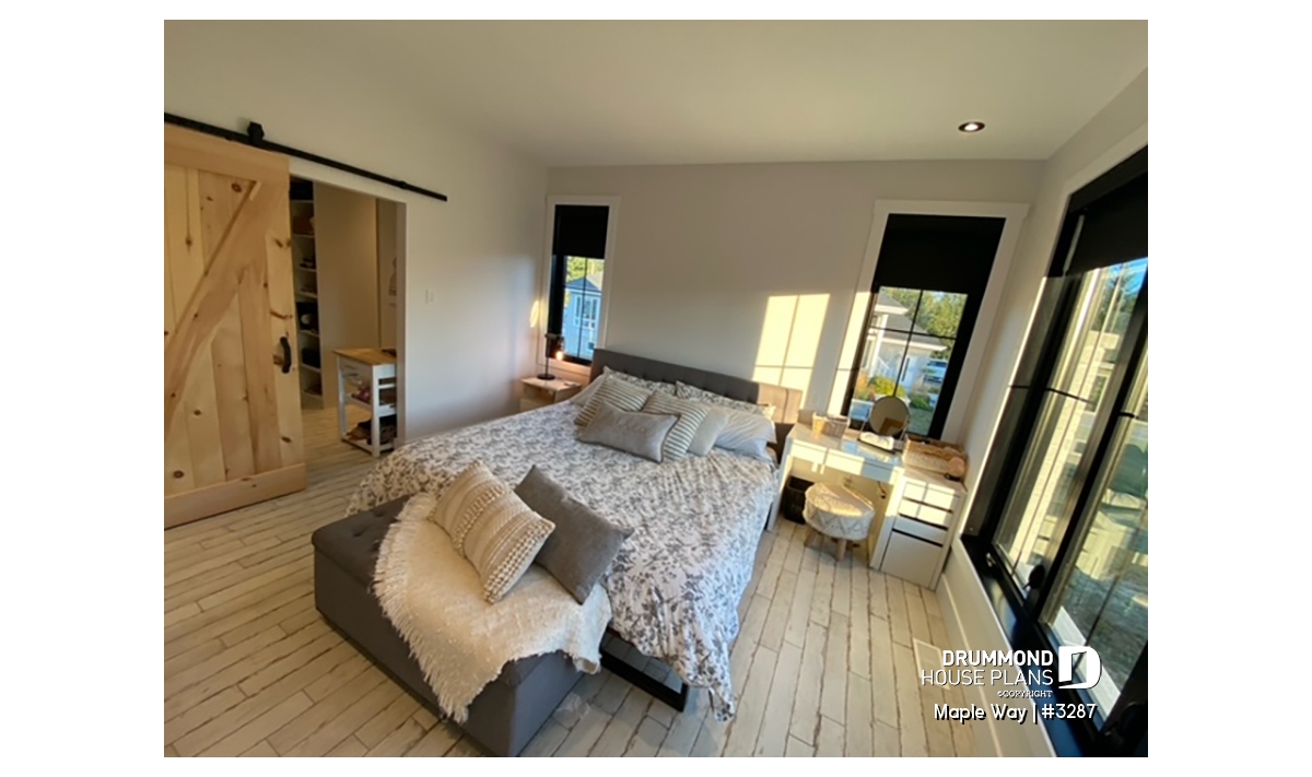 Secondary bedroom set apart for privacy, with a walk-in closet and its own private shower — perfect for guests.