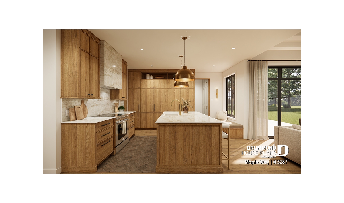 Bright kitchen with a large pantry and a charming window bench to enjoy the view.