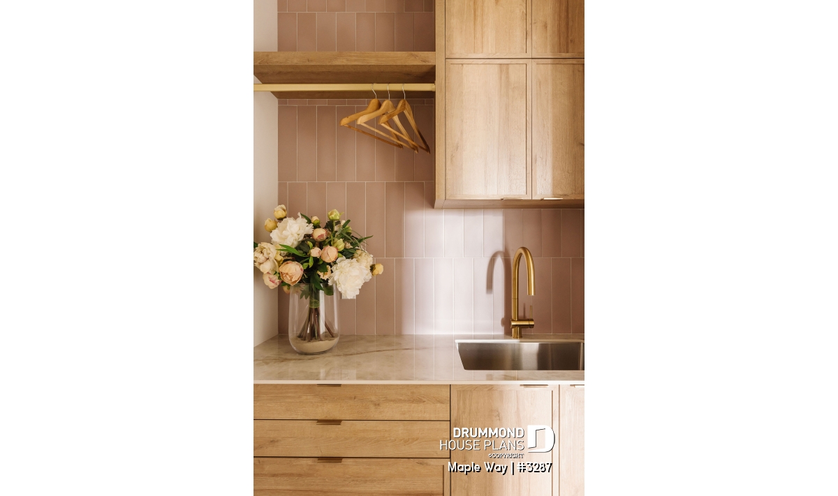 Convenient mudroom at the garage entrance, located near the pantry and kitchen.
