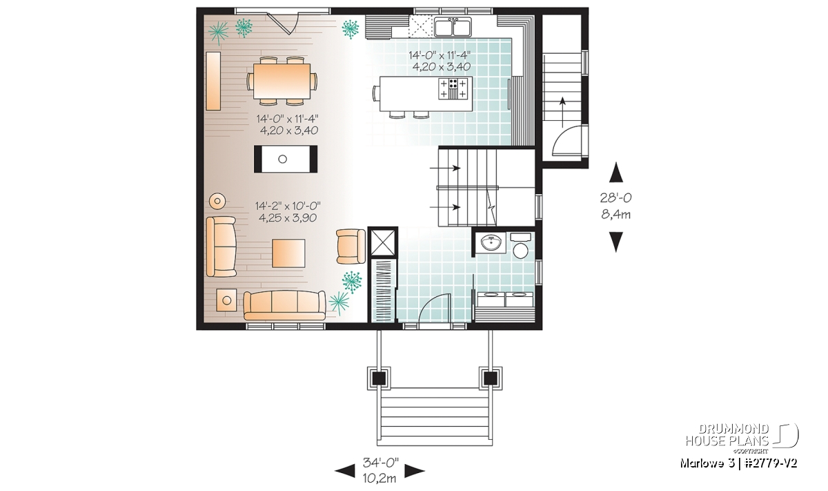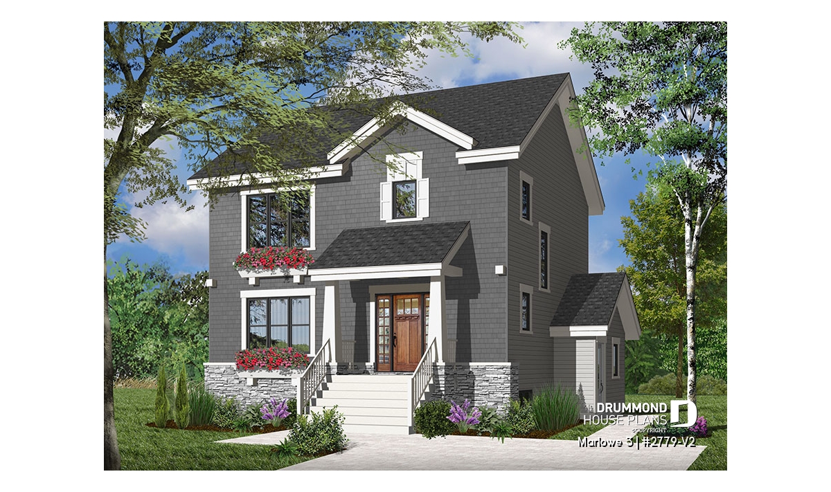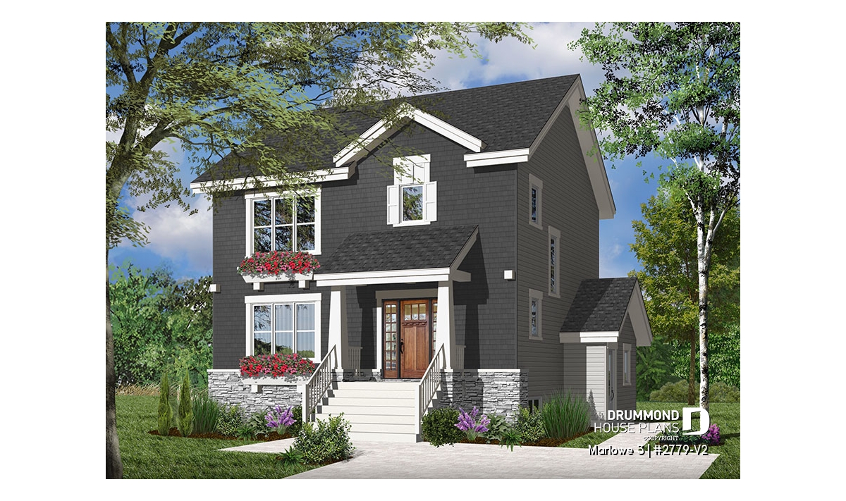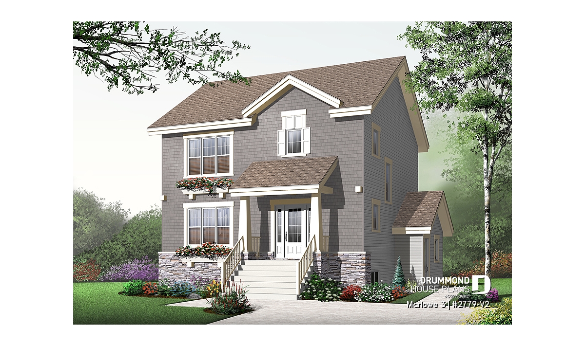 When you need a lot of house in a little space, this model fits the bill! A mere 33' wide, the main floor is dedicated to open concept living. The living and dining rooms share the warmth of a two-sided fireplace. The large kitchen is a dream to work in with ample storage and a large island with eating bar. A laundry room / half bath are conveniently and discreetly located near the entry.