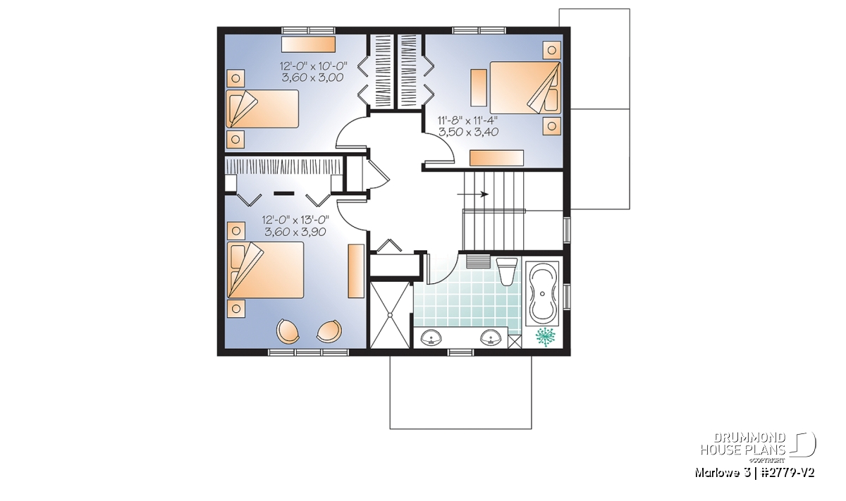 Upstairs, we find three bedrooms and large bathroom with oversize shower.