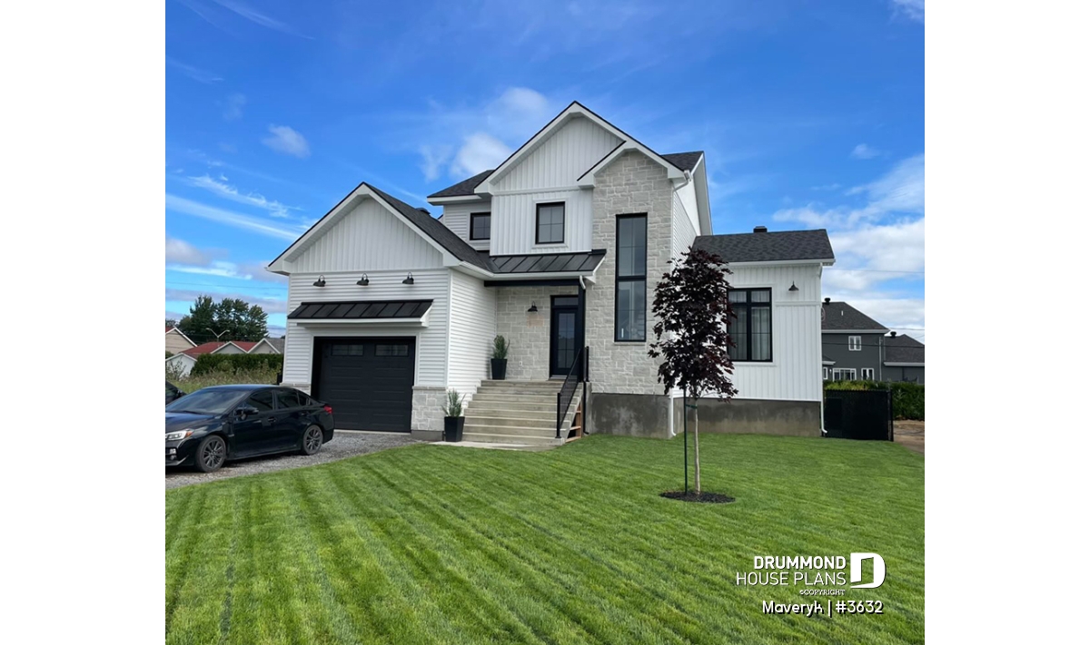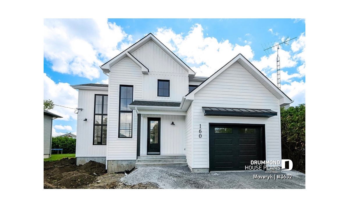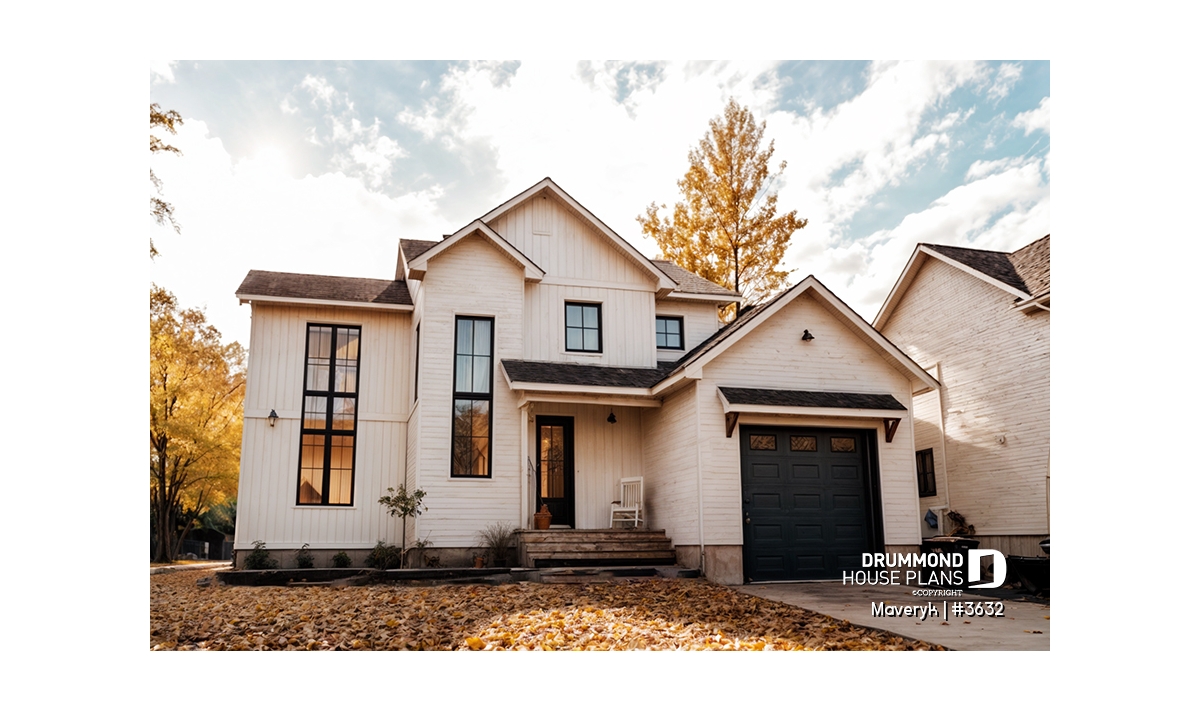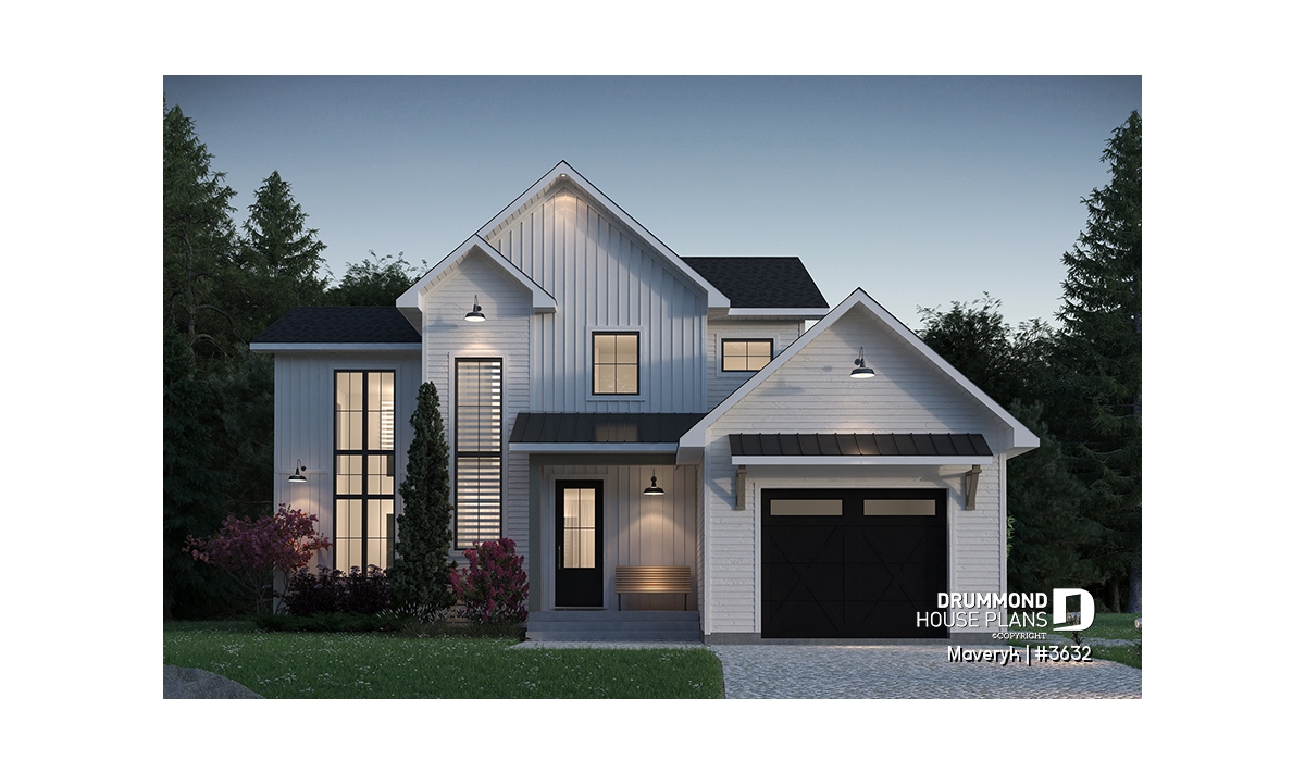 This modern farmhouse home plan perfectly blends rustic charm and contemporary comfort. Its elegant lines, attached garage, and covered front porch create a welcoming exterior that feels both timeless and inviting — a home designed for real family living.