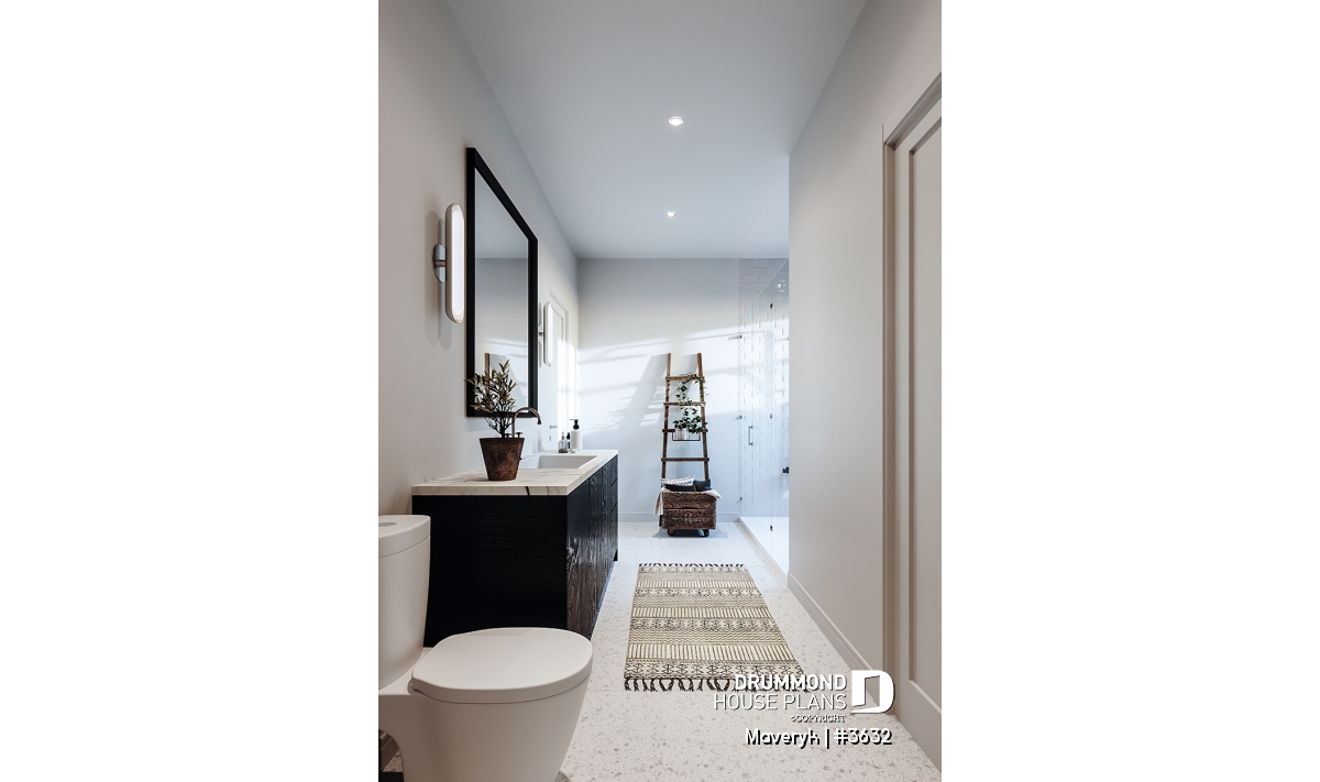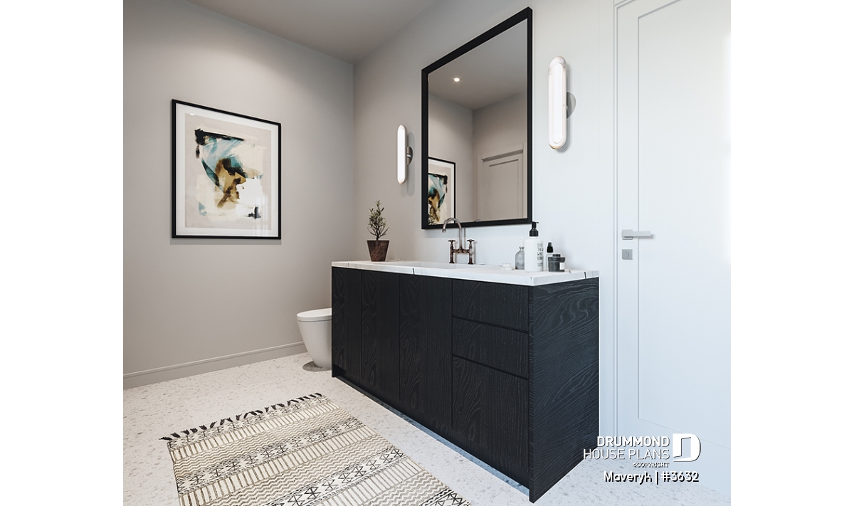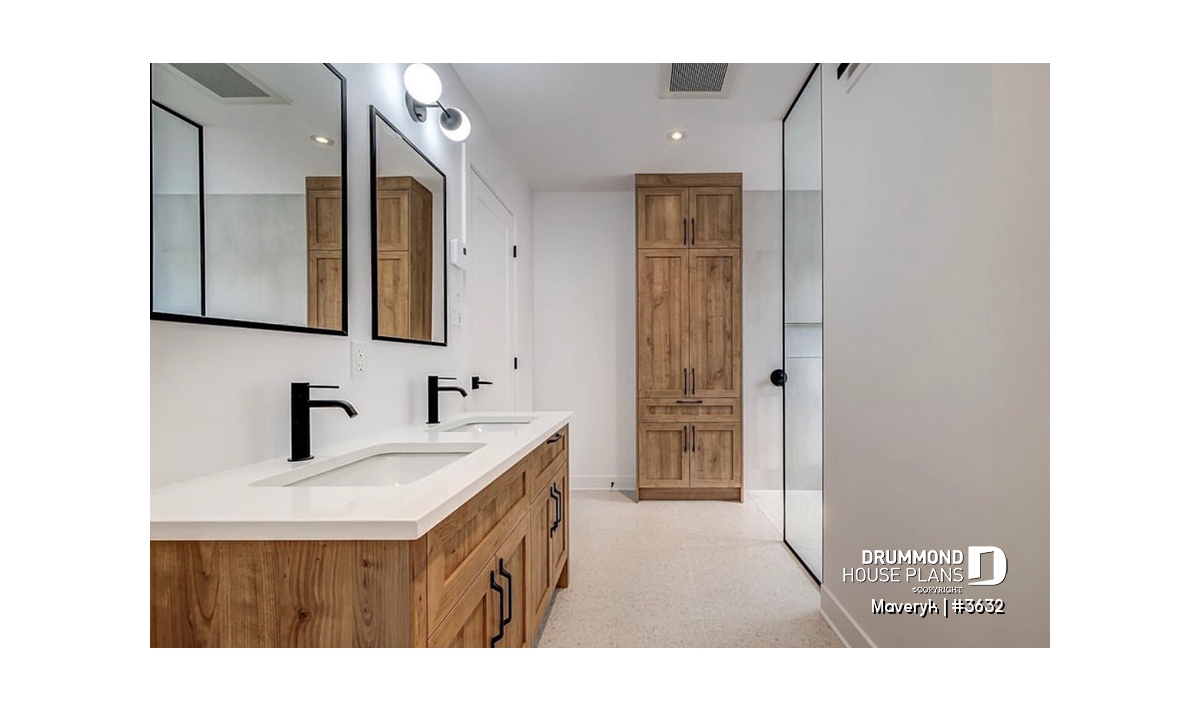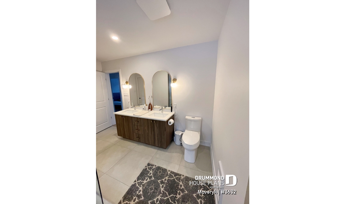 The primary bedroom includes a walk-in closet and direct access to the family bathroom, which features a double vanity and an elegant integrated tub-shower combo. Bedroom #3 also benefits from a walk-in closet, adding comfort for every family member.