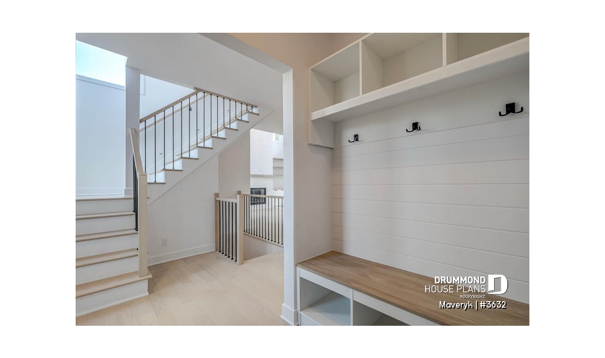 Front and garage entry with mudroom and charming built-in bench.