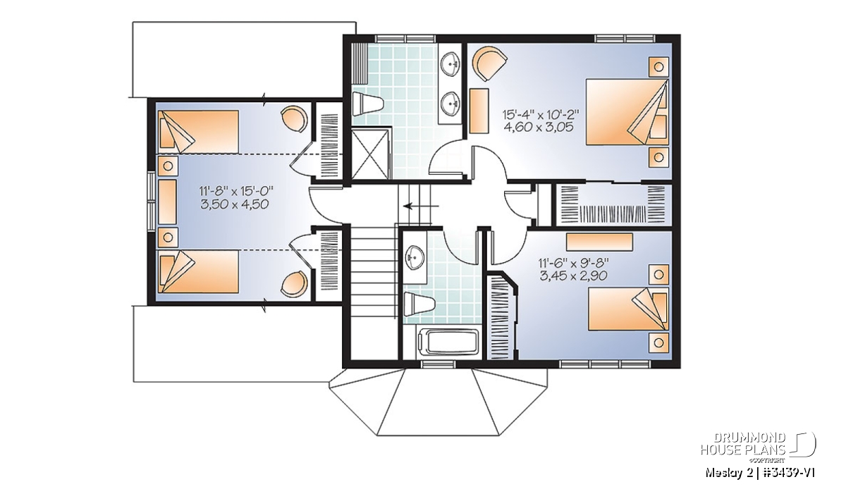 Square footage is optimized to add a full master suite, with large walk-in closet, that has its own private bathroom on the second floor, complete with a double vanity and large shower enclosure. There is a beautiful second full bathroom with tub, the perfect enhancement to the original plan, for the use of the occupants of the two nicely sized secondary bedrooms without sacrificing much living space.