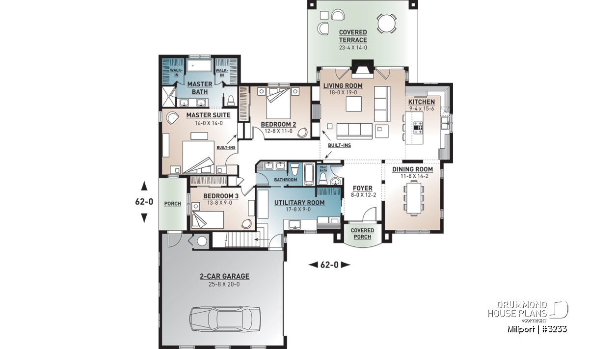 Ceiling over 8', Living bonus space, Built-ins, Covered patios, Side entry garage, Island, Fireplace, Master suite on main, Gound floor laundry room, His/Hers walk-in, Separate bath and shower, Double sinks