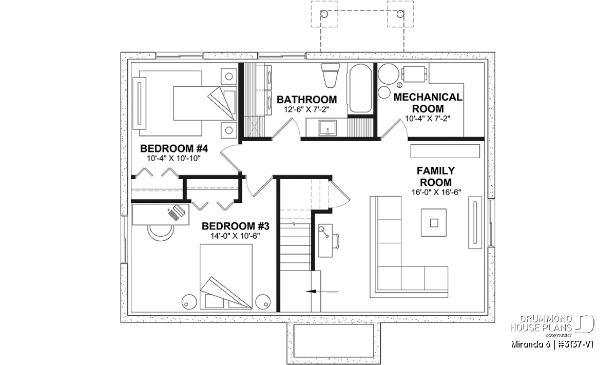 With the *optional finished basement, the Miranda 6 reveals its full potential. This level can include two additional bedrooms, one of which is generously sized, a spacious family room, a second full bathroom with washer and dryer area, as well as the mechanical room. Depending on your layout, the home can offer up to 4 bedrooms, 2 full bathrooms, and 2 family rooms, ensuring everyone enjoys their own space and privacy.