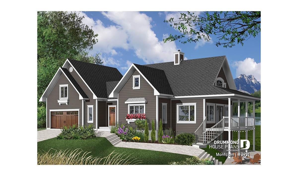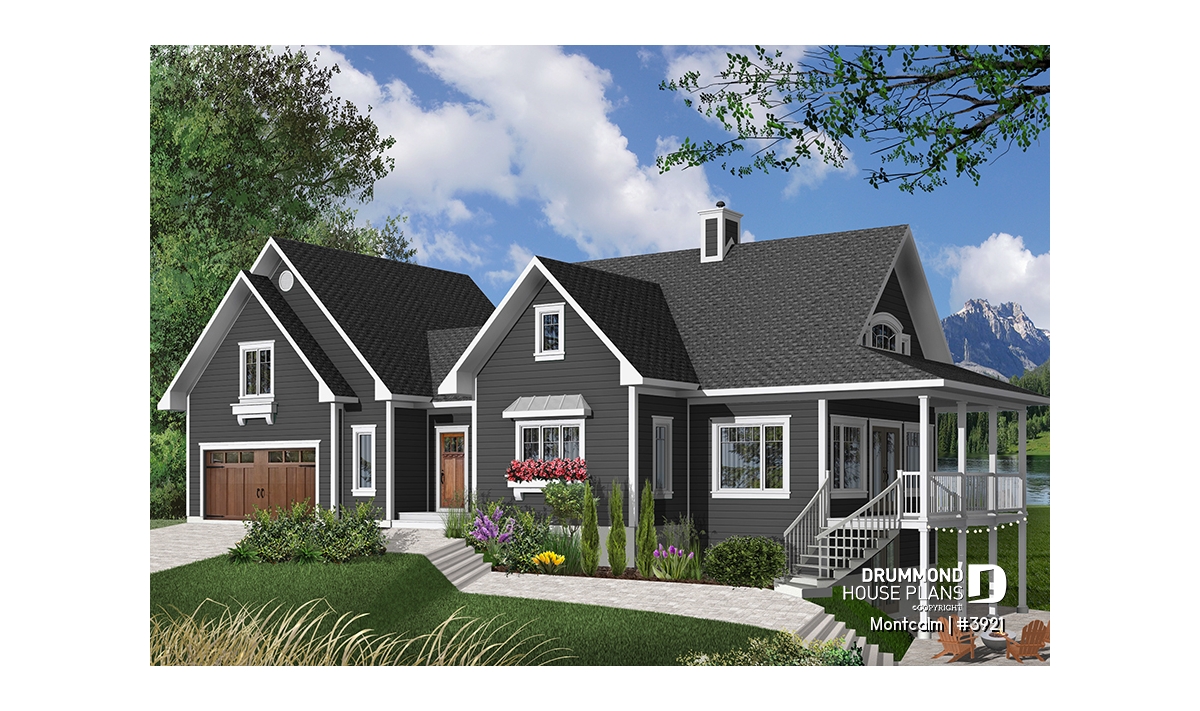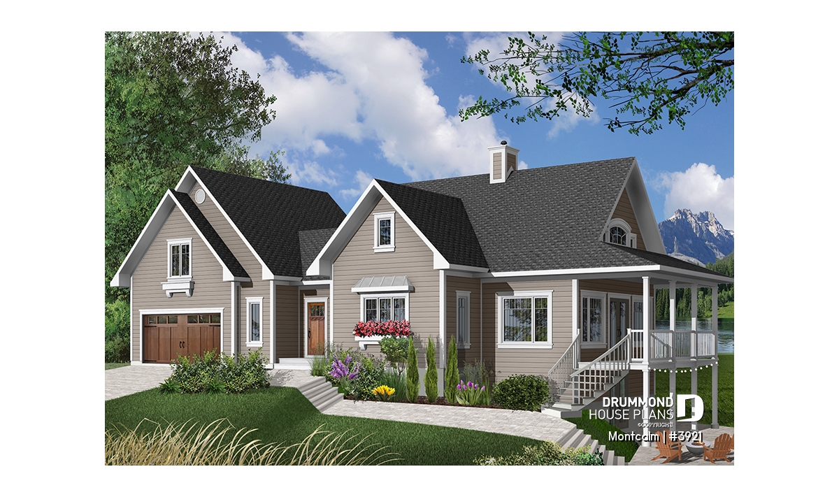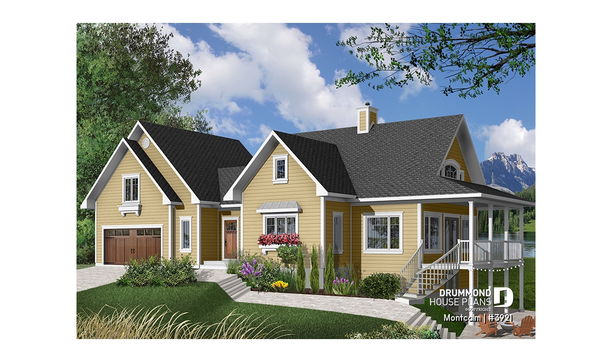 Spectacular 3 to 4 bedroom country cottage plan with 2-car garage.