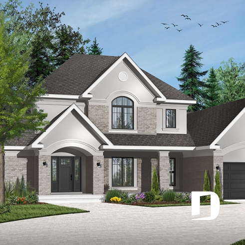 Luxury 4 bedrooms ranch style house plan with a 3-car garage.