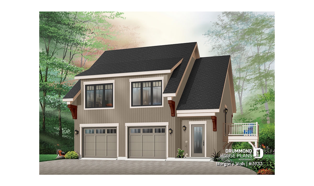 The exterior puts a pleasing face forward with a simple roofline, generous windows and attractive corbel detailing. The main level provides plenty of space for two vehicles (or one and lots of toys!) and the foyer is accessed either from within the garage or by the front entry. Hobbyists and outdoor enthusiasts will love the washroom on the main floor as well.