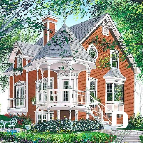 Victorian house plan, 3 bedrooms, master suite, fireplace, balcony