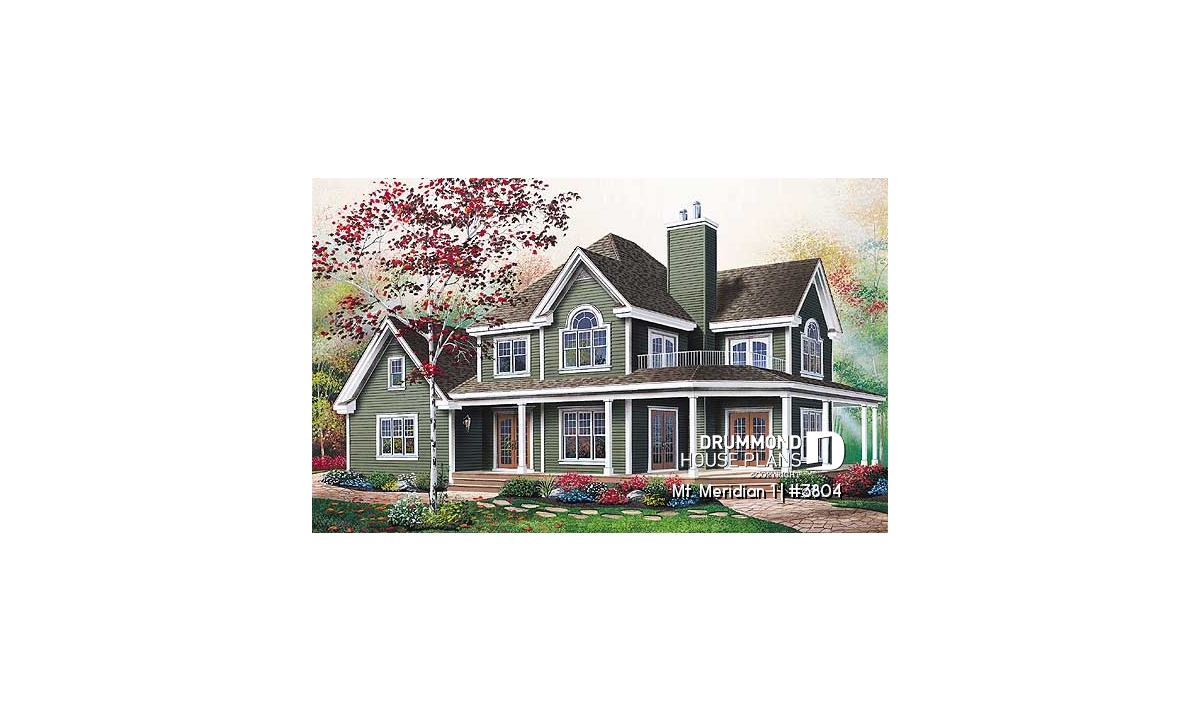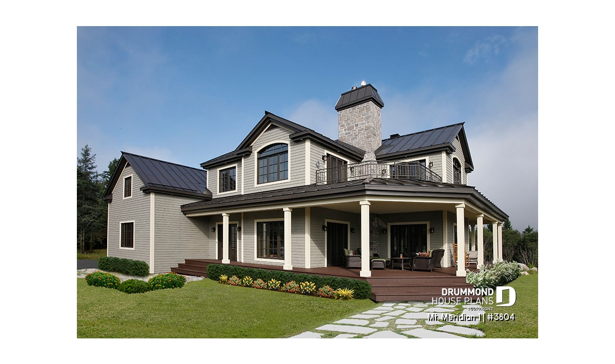 Ideal lakefront house design with wraparound covered porch.