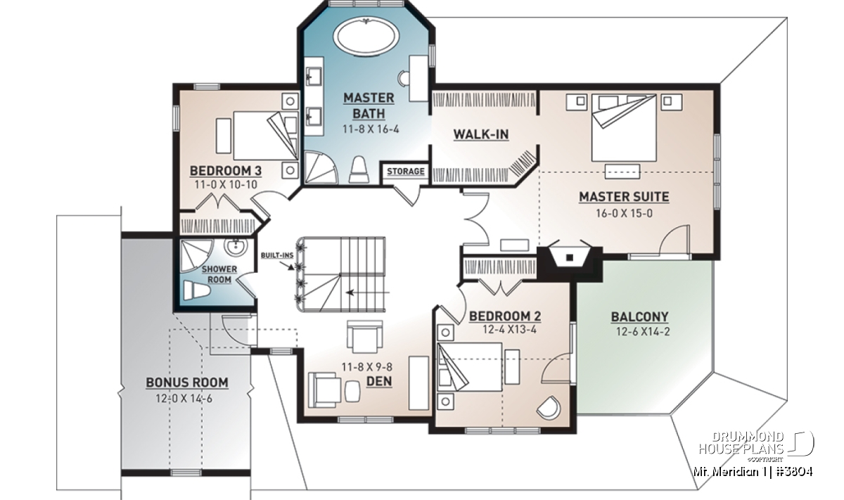 On the upper level, we still find 3 bedrooms with the possibility of a fourth, two accesses to an open-sky terrace, of which one is for the superb master suite who amazes us by its format, by the presence of a fireplace and a large walk-in closet, and above all by a most comfortable private bathroom, without forgetting access to a bonus space above the garage. Discover many similar plans on http://www.drummonddesigns.com/
