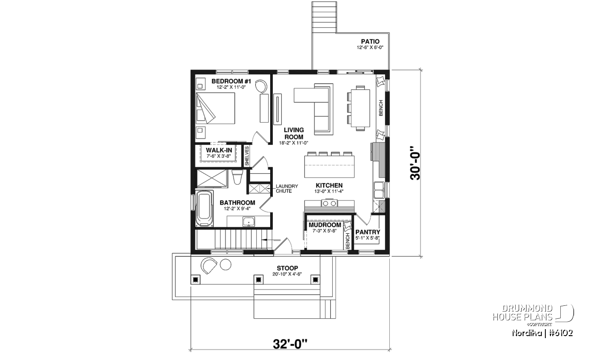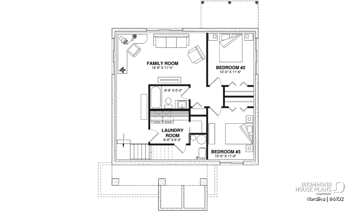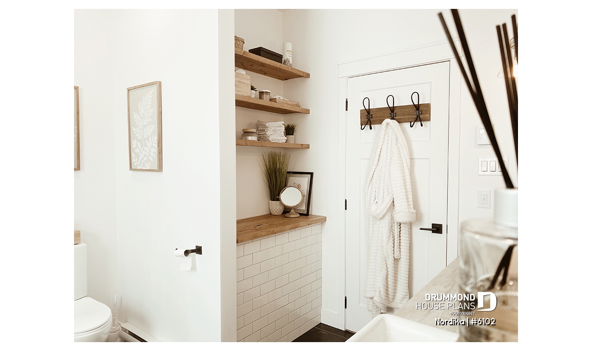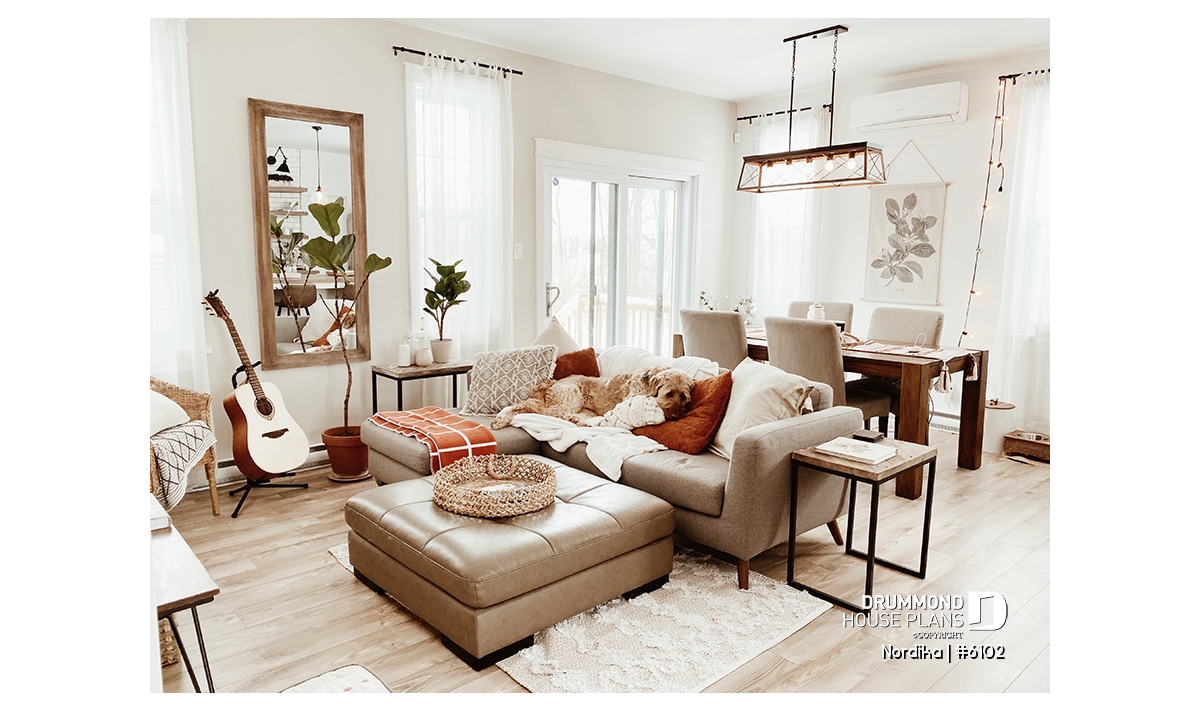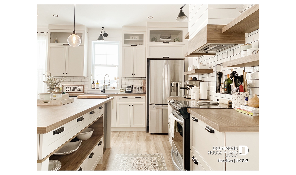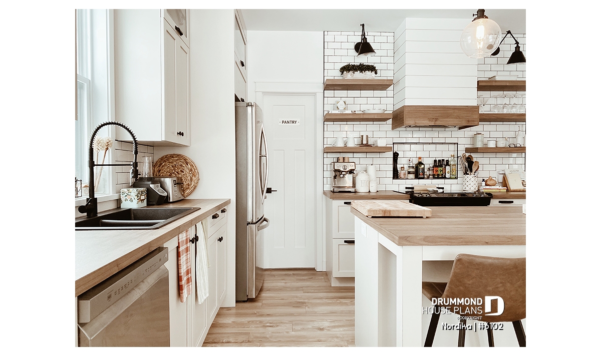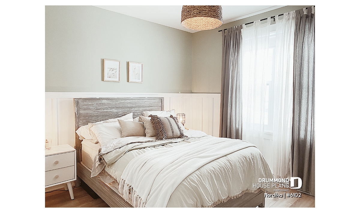 The NORDIKA (6102) is a modern rustic farmhouse bungalow designed to deliver maximum charm, comfort and functionality within a beautifully efficient footprint. Whether you’re looking for your first home, downsizing in style, or planning a cozy family nest, this thoughtful layout adapts naturally to a wide range of lifestyles. Offering 1 to 3 bedrooms and 1 or 2 bathrooms depending on the optional finished basement, this plan stands out for its warm aesthetics, smart storage solutions, and surprisingly spacious feel.
