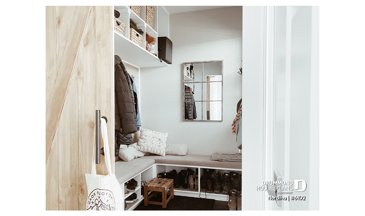 Practical, well-organized mudroom entry with a large walk-in closet.