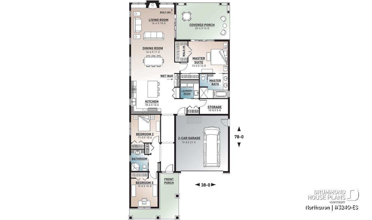 Designed with the same “ES” inspiration as plan 2939-ES, Drummond House Plans new approach includes Northaven another application of the strategy that encompasses quality of construction, air, energy efficiency, ecological and ergonomic concerns with design to create a truly Environmentally Superior single storey home.