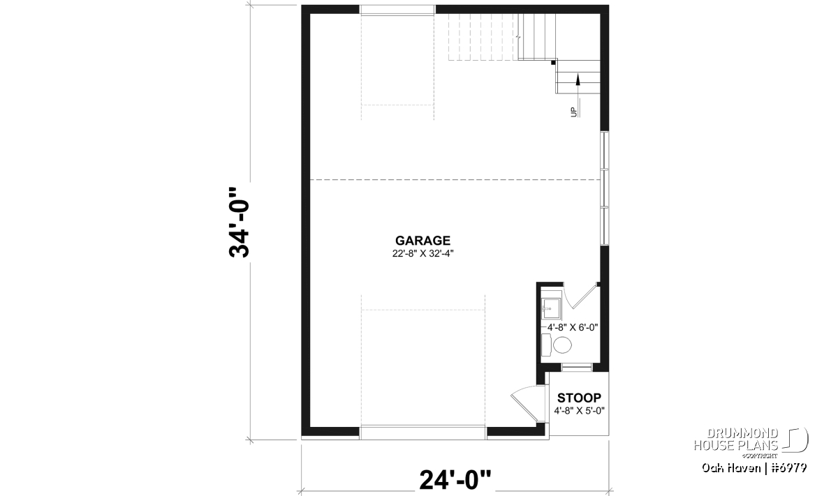 With efficient dimensions of 24' x 34', this garage provides excellent maneuverability and flexibility for arranging your space. Originally designed for a slab-on-grade foundation, the plan can also be customized to accommodate other foundation types based on your lot conditions and local requirements.