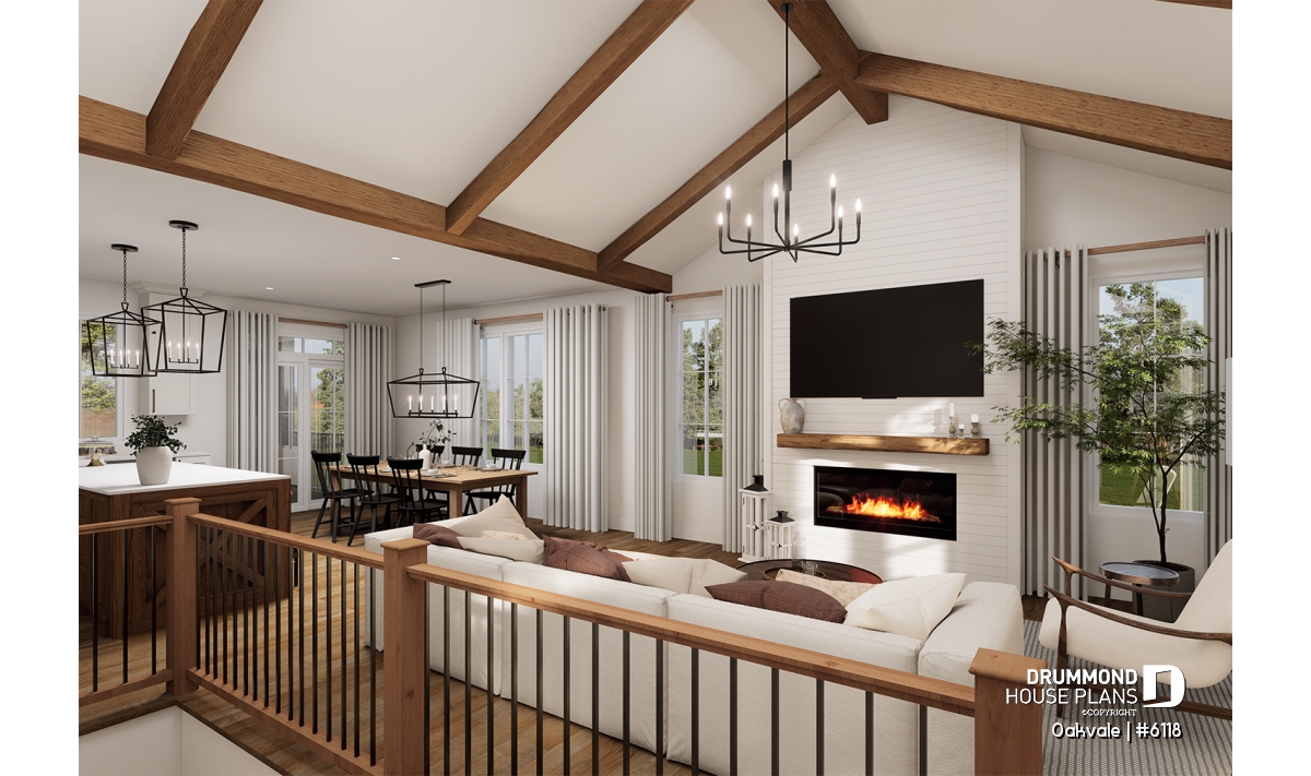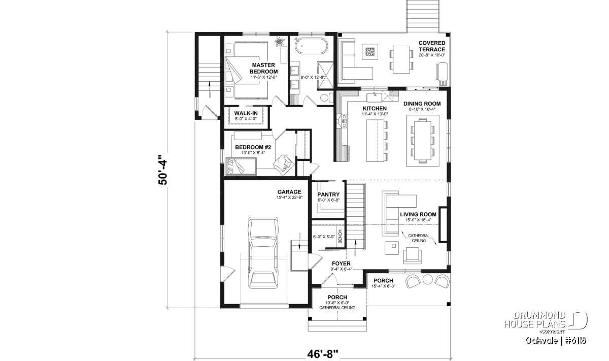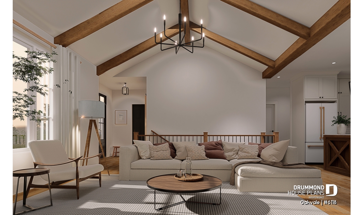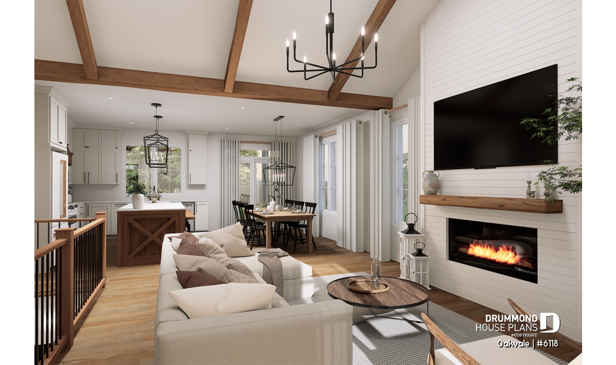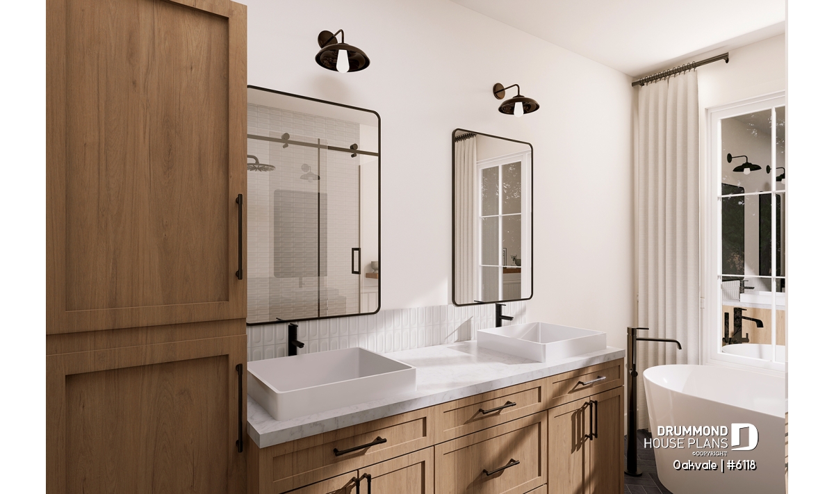 The OAKVALE house plan (#6118) offers 1398 sq. ft. on the ground floor and a 400 sq. ft. garage. A finished basement proposal is also illustrated (option on plan $) if you want to increase the space available to your family. Many foundations options are available.