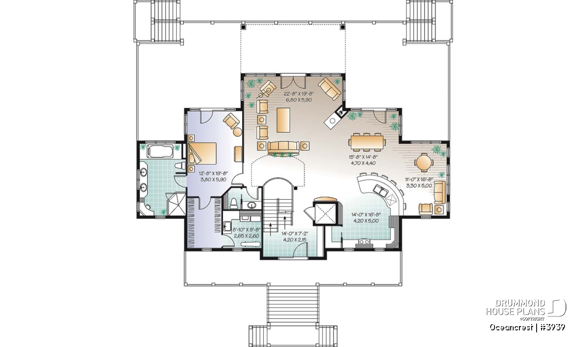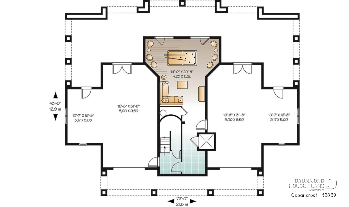 The ground floor consists of a central games room, grand staircase and elevator flanked by dual garages with generous storage. A loggia provides cool spaces at the height of day and dual staircases balance the look of the upper deck access.