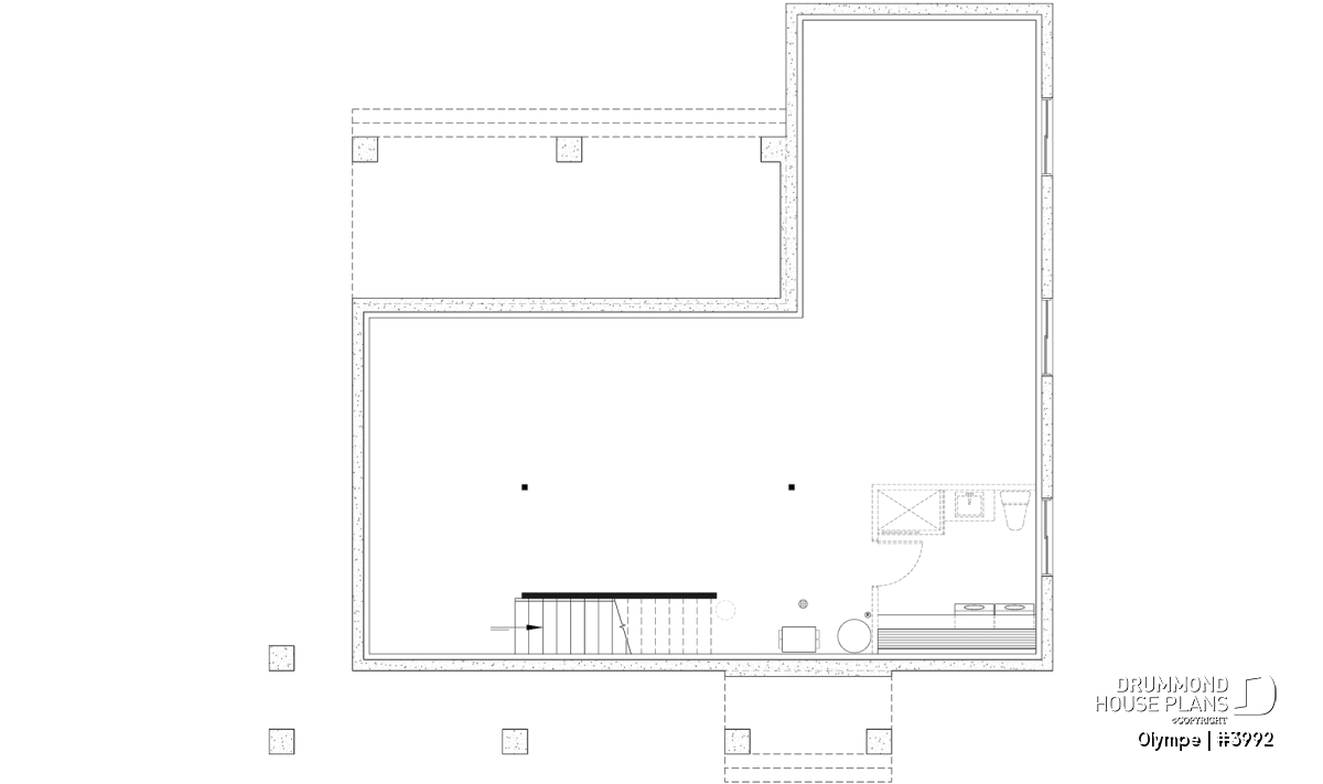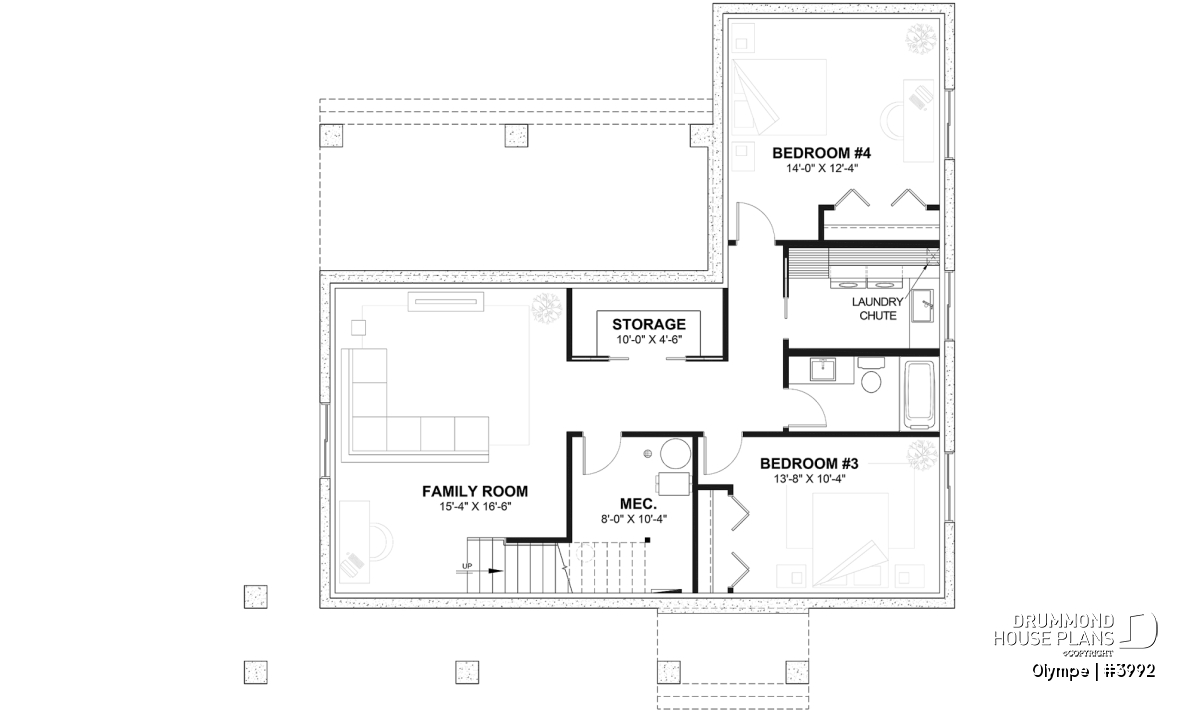 Plan # 3992: base model with 1212 heated square feet, no garage, laundry located in unfinished basement (OPTIONAL FINISHED BASEMENT PLAN OFFERED AT EXTRA COSTS)..
