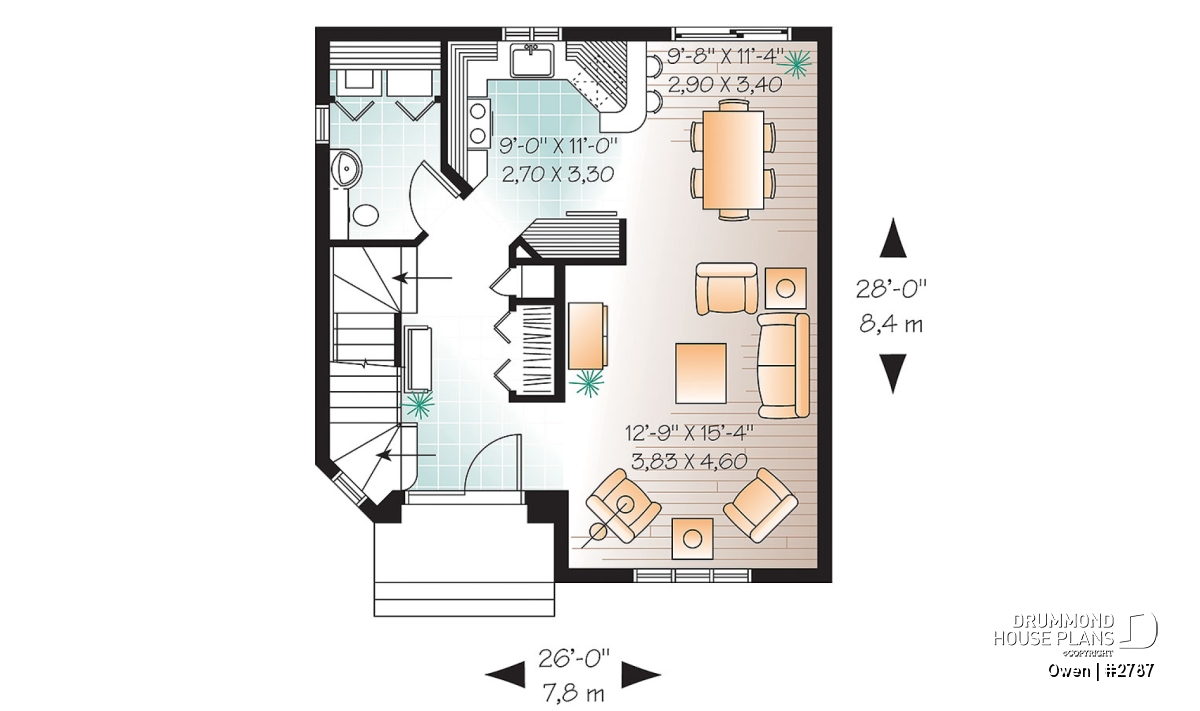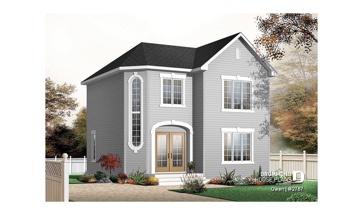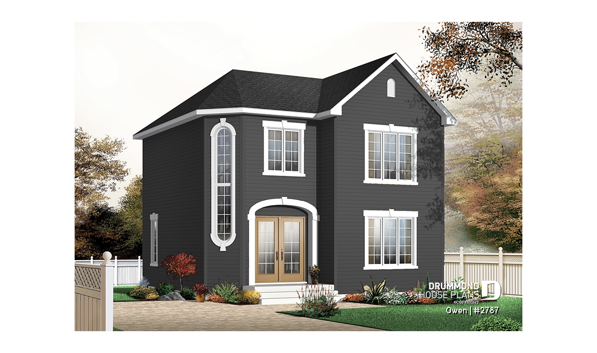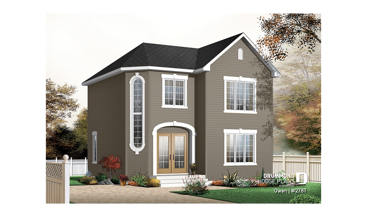 Very distinctive exterior look with very original window illuminating the stairwell and main entry. Open concept living and dining rooms. Two or three bedrooms and both options included with the plan.