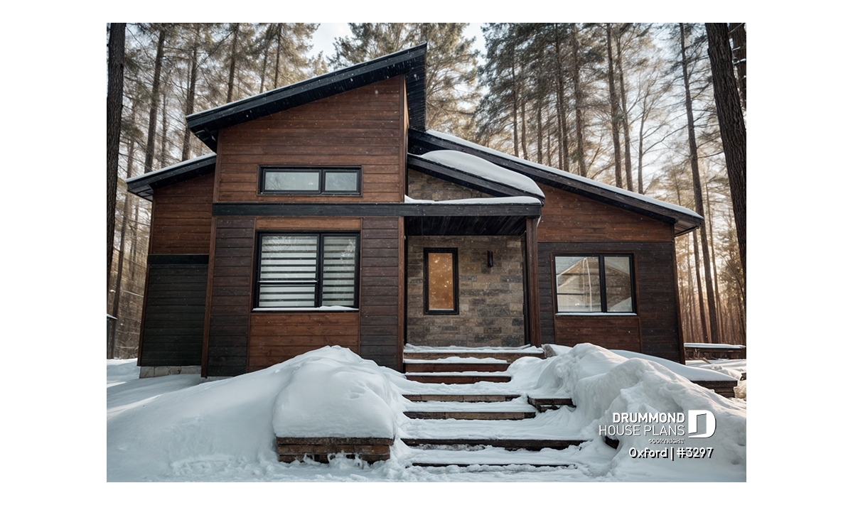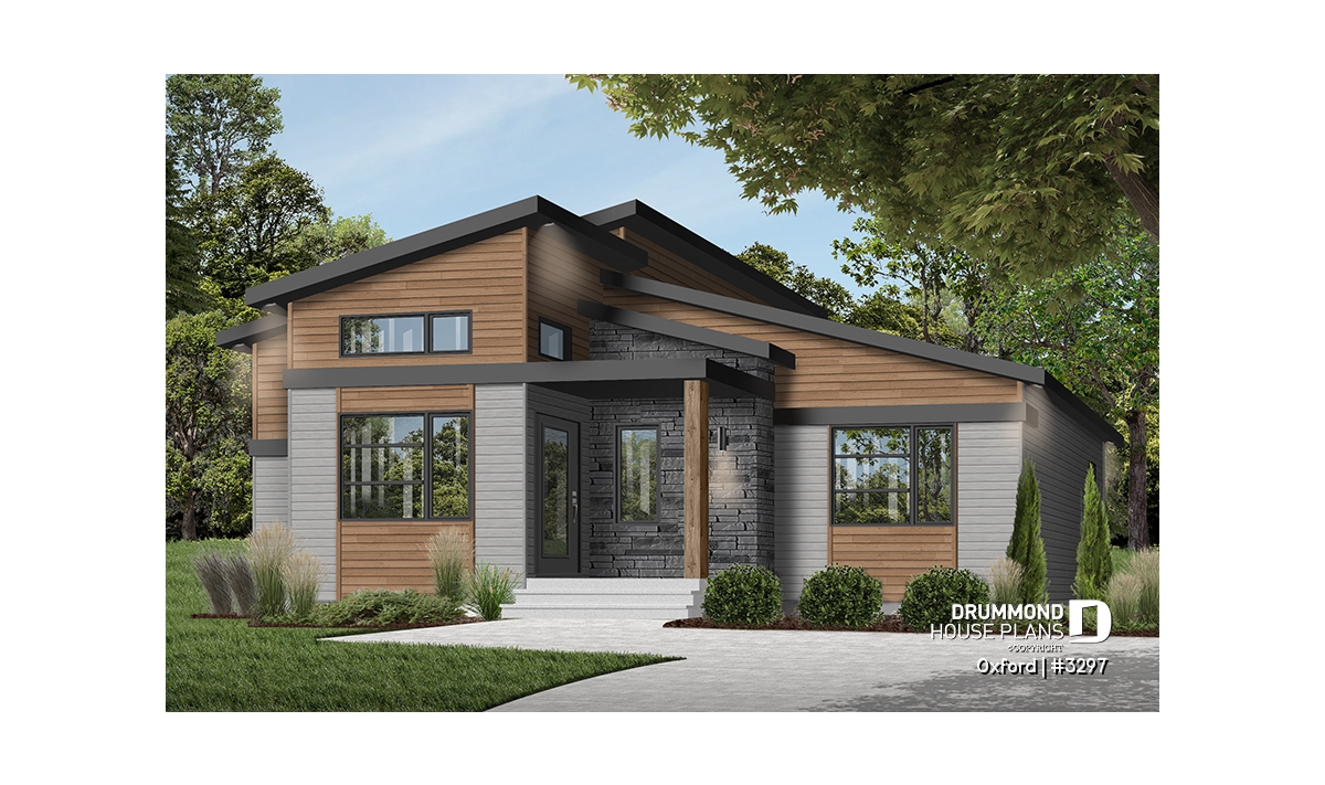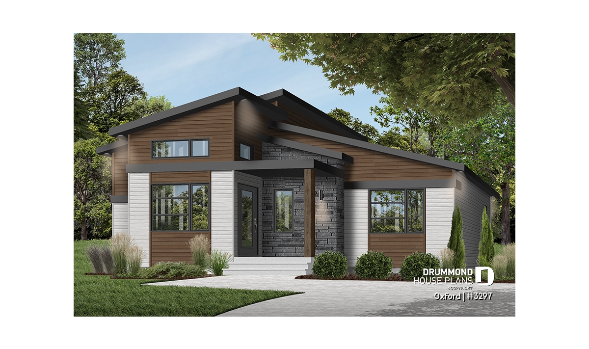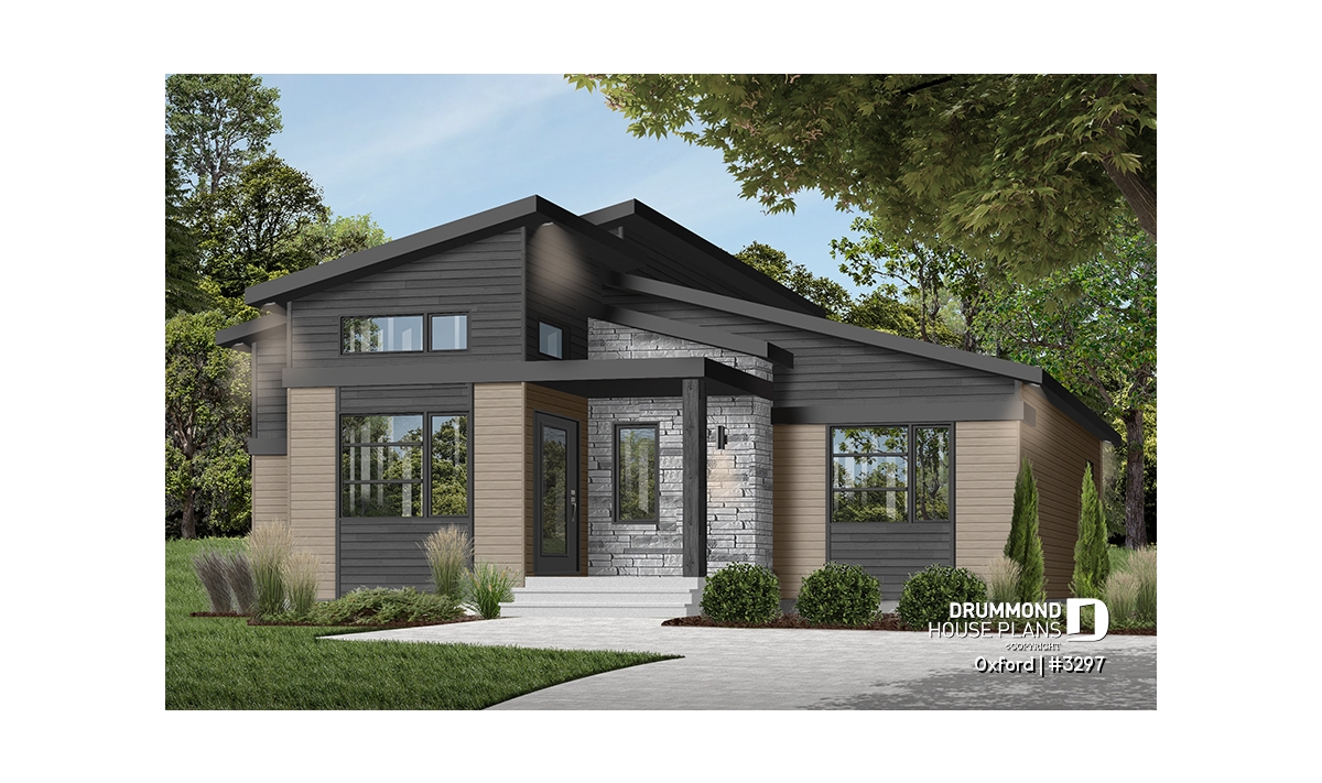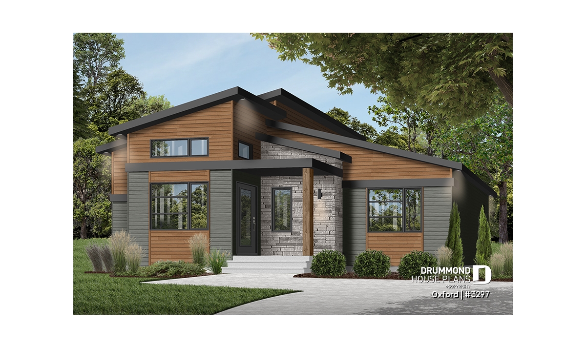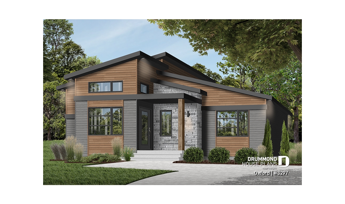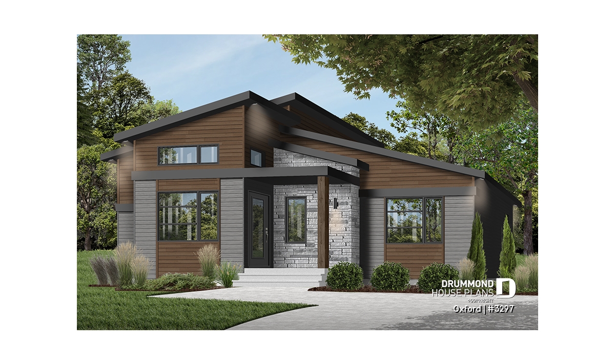 Superb house floor plan style Mid-Century, very trendy, and offering noble and warm exterior materials.