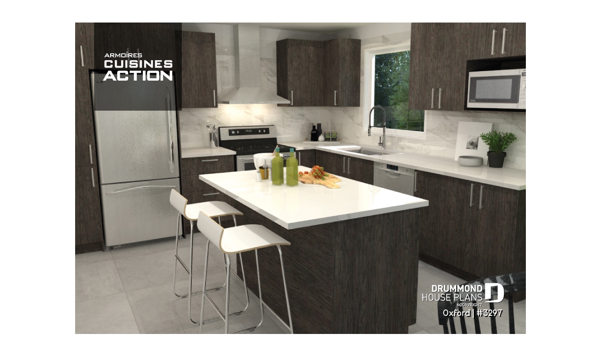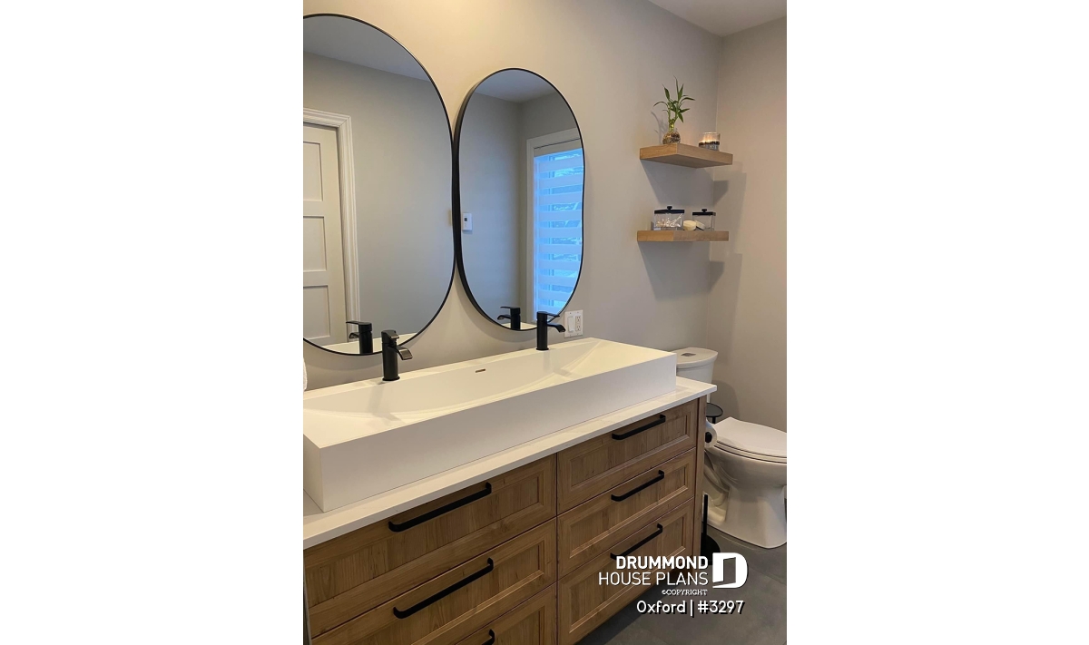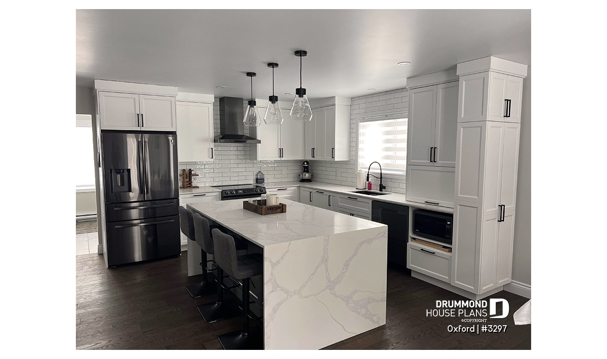The basement is unfinished. Contact us for any modifications to this plan such as for the addition of a garage, the finishing of the basement (extra bedrooms) or others.