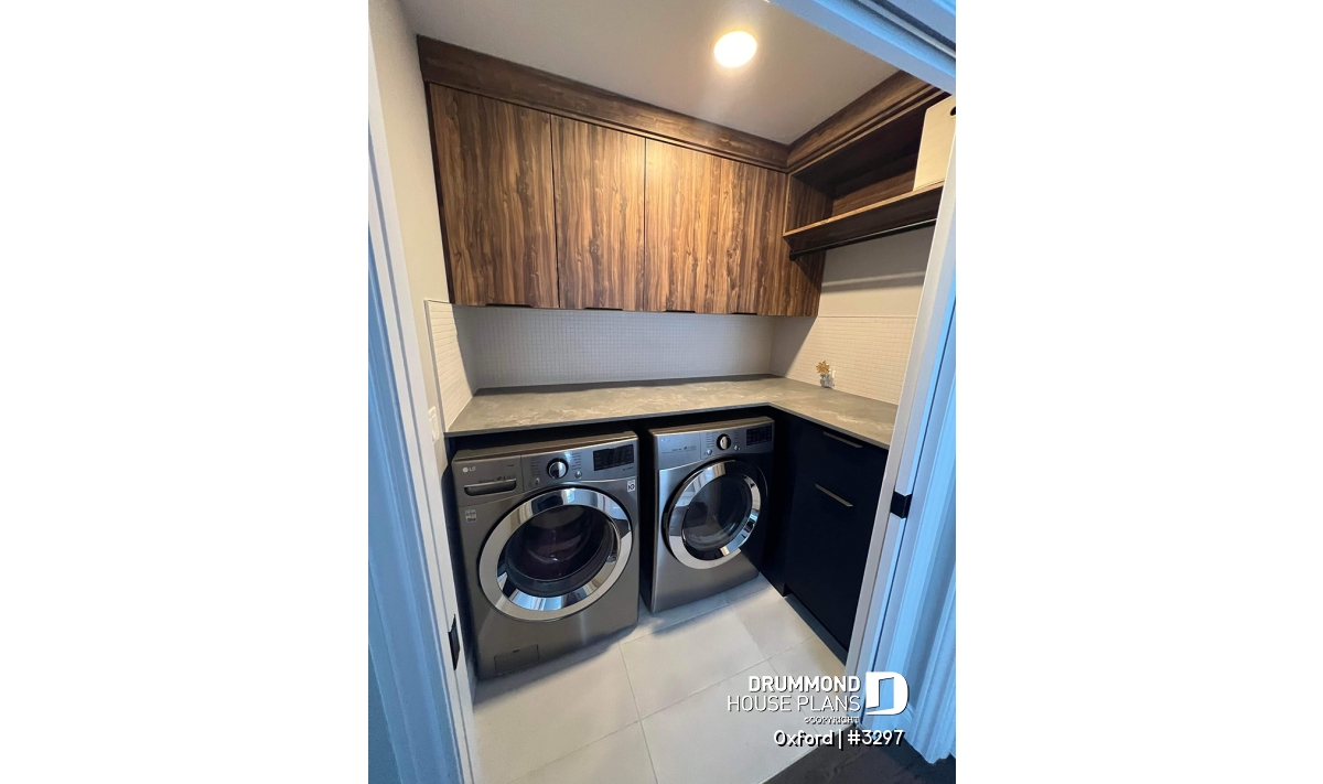 A laundry room and a powder room are also located near the kitchen.