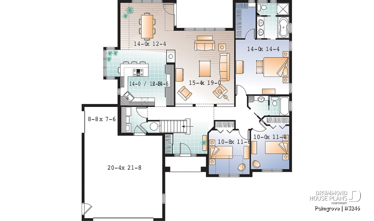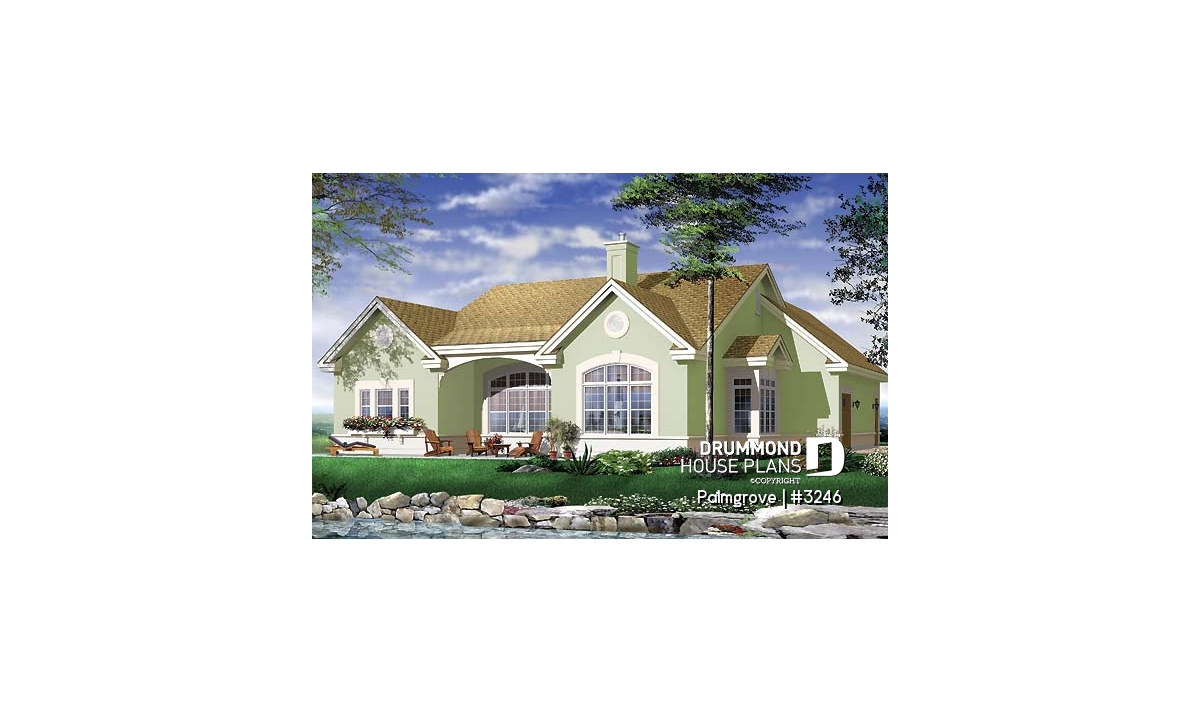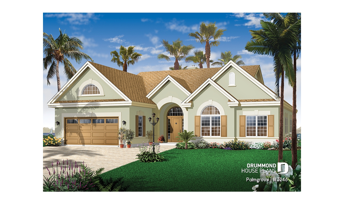 While rendered with a southern look, this model is popular nation-wide due to the easy living style on one level.