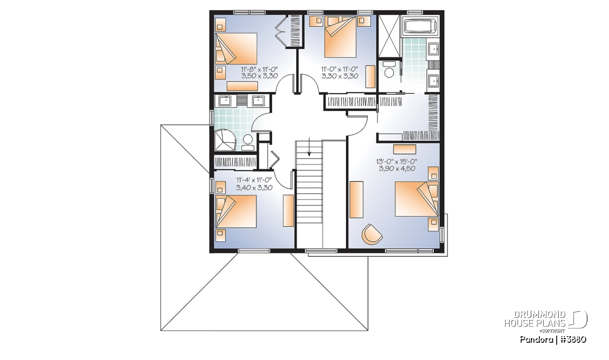 The open styled staircase, 7' wide to the upper level, permits an abundance of natural light throughout. Three secondary bedrooms, the smallest of which is 11' x 11', share a full bathroom with double vanity and the well appointed master suite has a walk-in closet and a double vanity in its private bathroom with separate shower and tub..