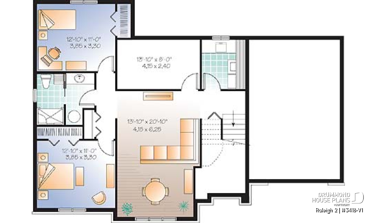 With a growing demand for models of home offering 4 bedrooms, Drummond House Plans is happy to oblige by offering plans like this 3418-V1, derived from the popular 3418 model, suggesting an interior of 4 bedrooms and full amenities.