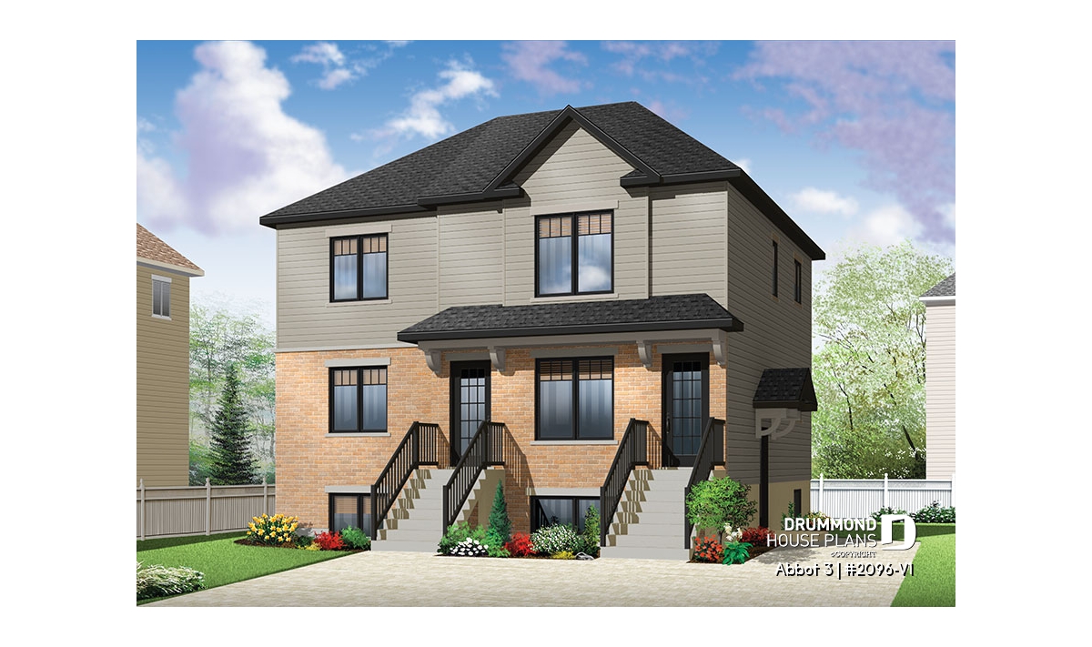 Triplex with three similar appartments with large rooms, independant access for each appartment and each has a 12'-0" x 8'-0" terrace.