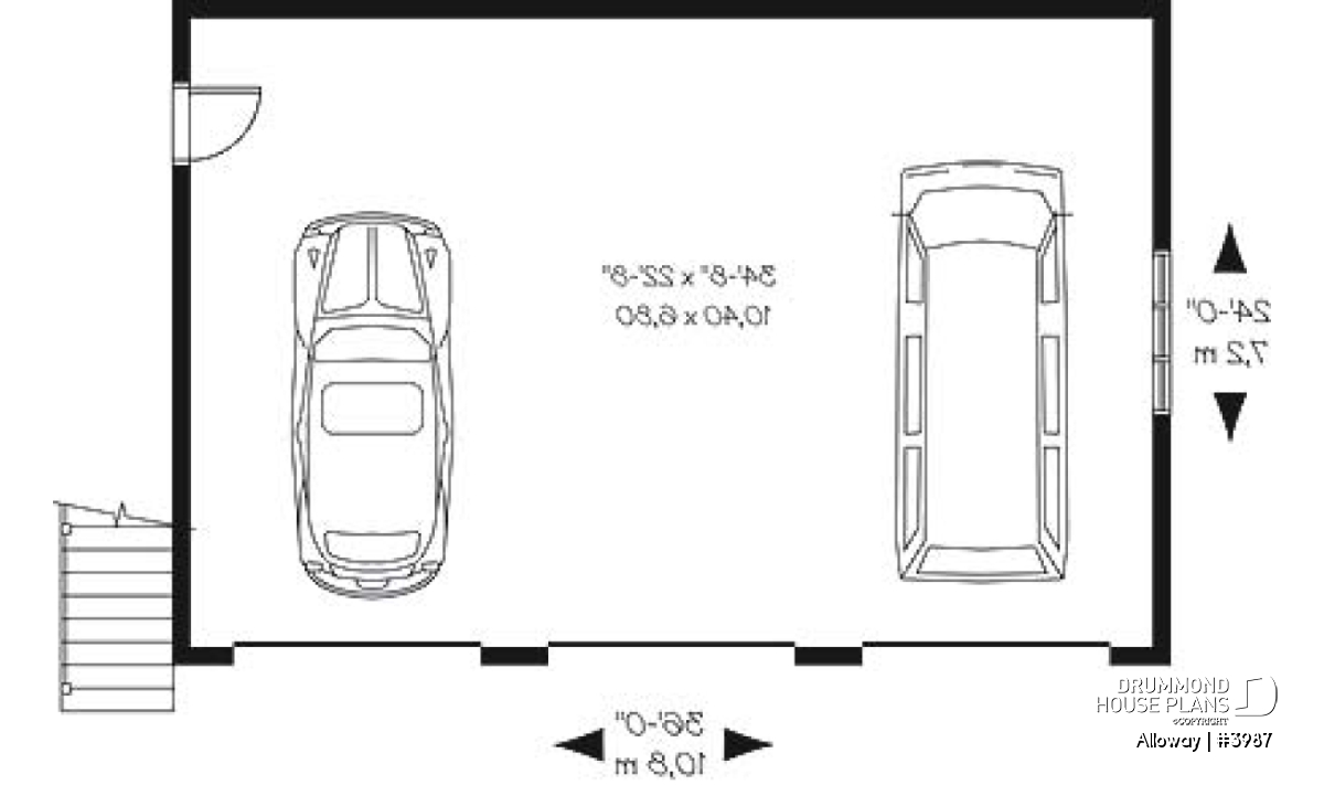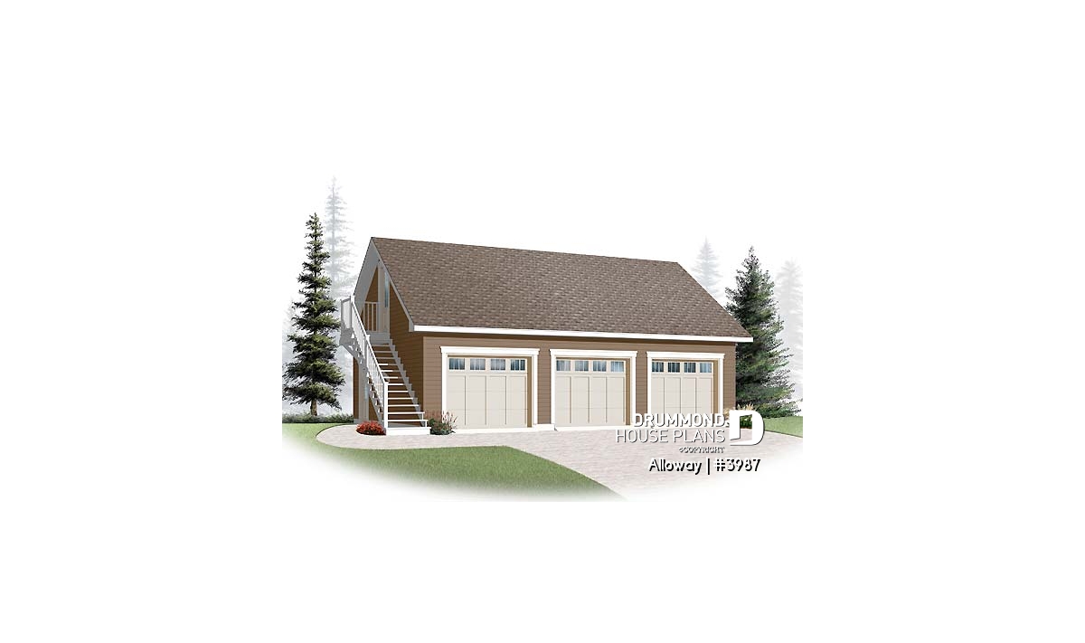 This simple, three-stall garage provides generous space for parking vehicles and bonus storage space above. An exterior staircase ensures all interior space is useable for storage.