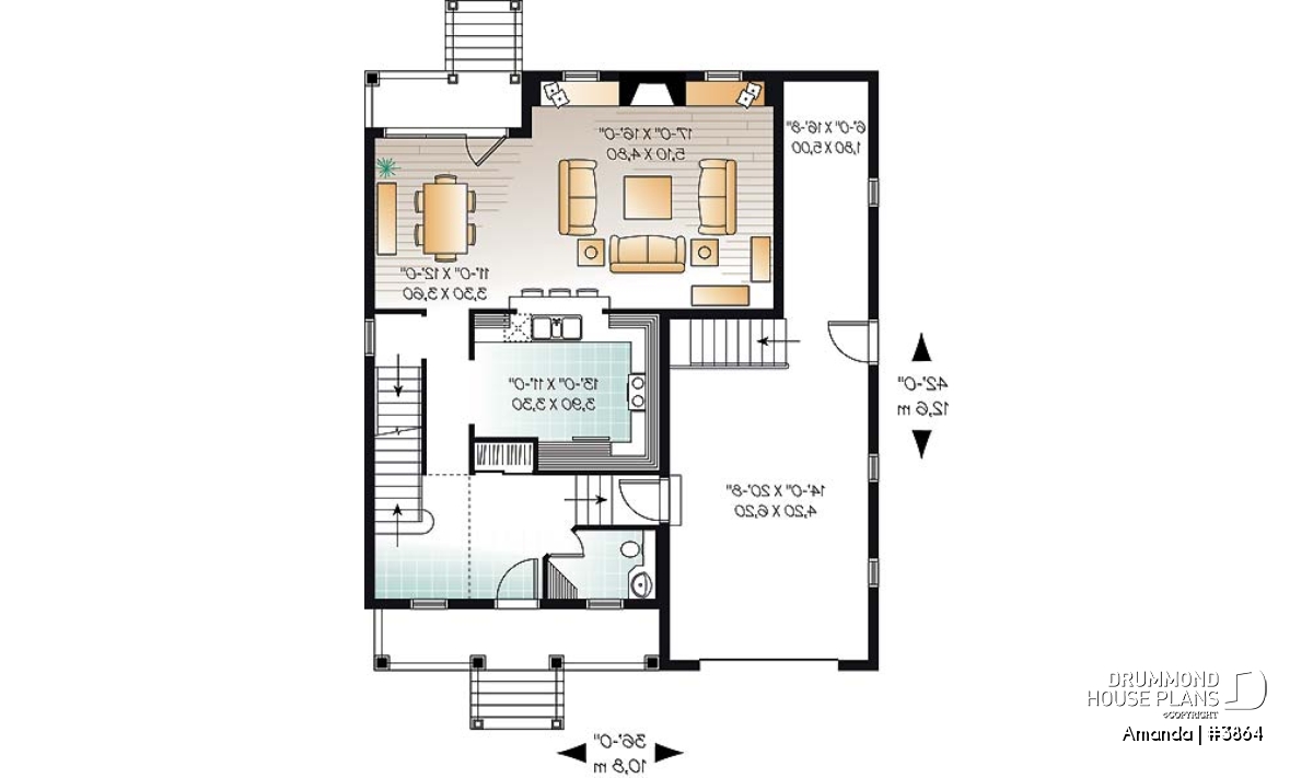 Remarkable entry partially opened on two levels. Kitchen with lunch-counter by way of a dinette. Large living room with central fireplace and benches on each side.