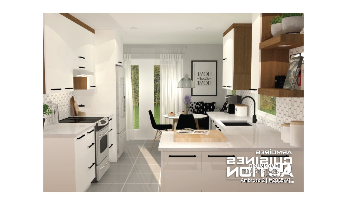 Lunch counter, Panoramic view, Gound floor laundry room, Open floor layout
