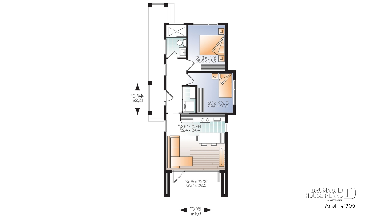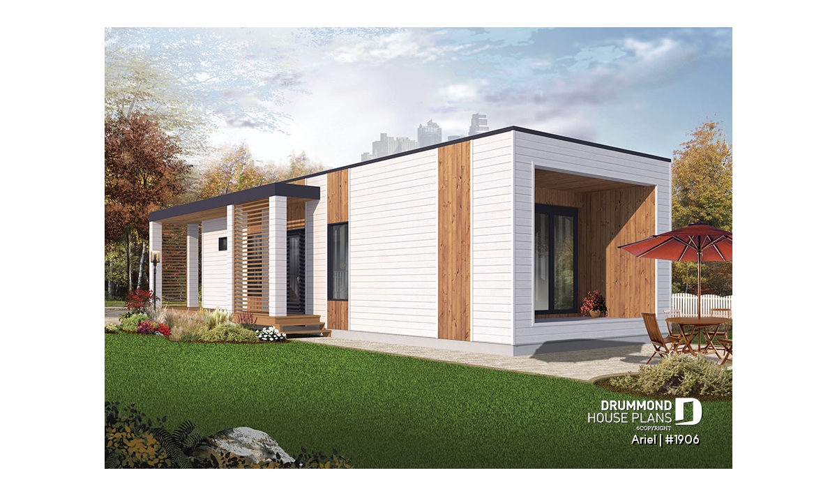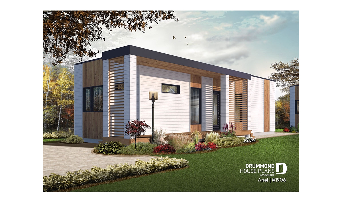Modern 631 sq.ft. tiny house plan, 2 bedrooms, 9' ceiling, ideal for vegetable garden rooftop