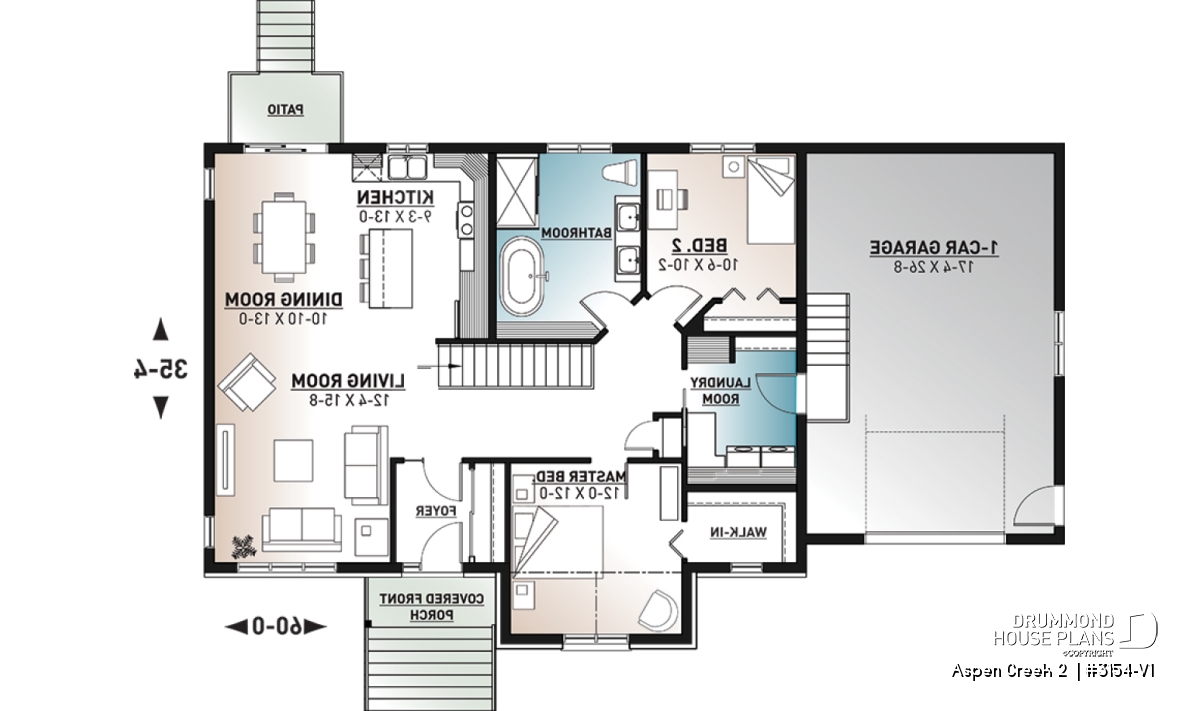 The ASPEN CREEK 2 house plan (#3154-V1) features an elegant single-story ranch-style home with garage, designed in a modern country style that blends warmth, comfort, and timeless appeal. Offering 1,344 square feet of living space on the main floor, this thoughtfully designed layout provides bright and functional living areas that can easily adapt to different stages of life.