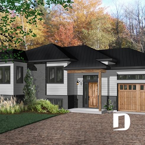 Increasingly popular contemporary designs are too often associated with high cost. Whether you are a first time homeowner or an empty nester, this plan version to which we have added a one-car garage, is an unexpected surprise with luxurious contemporary style on a budget.