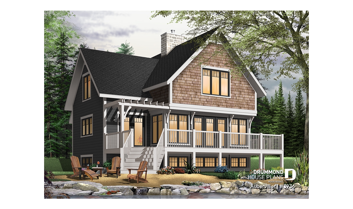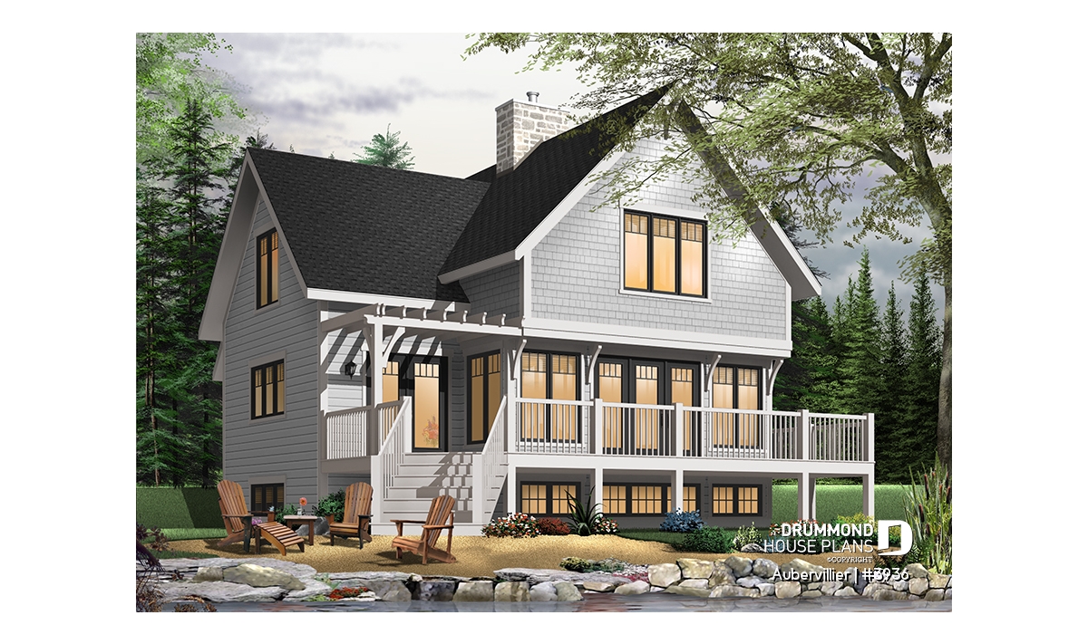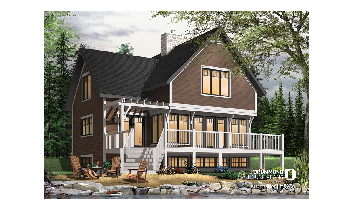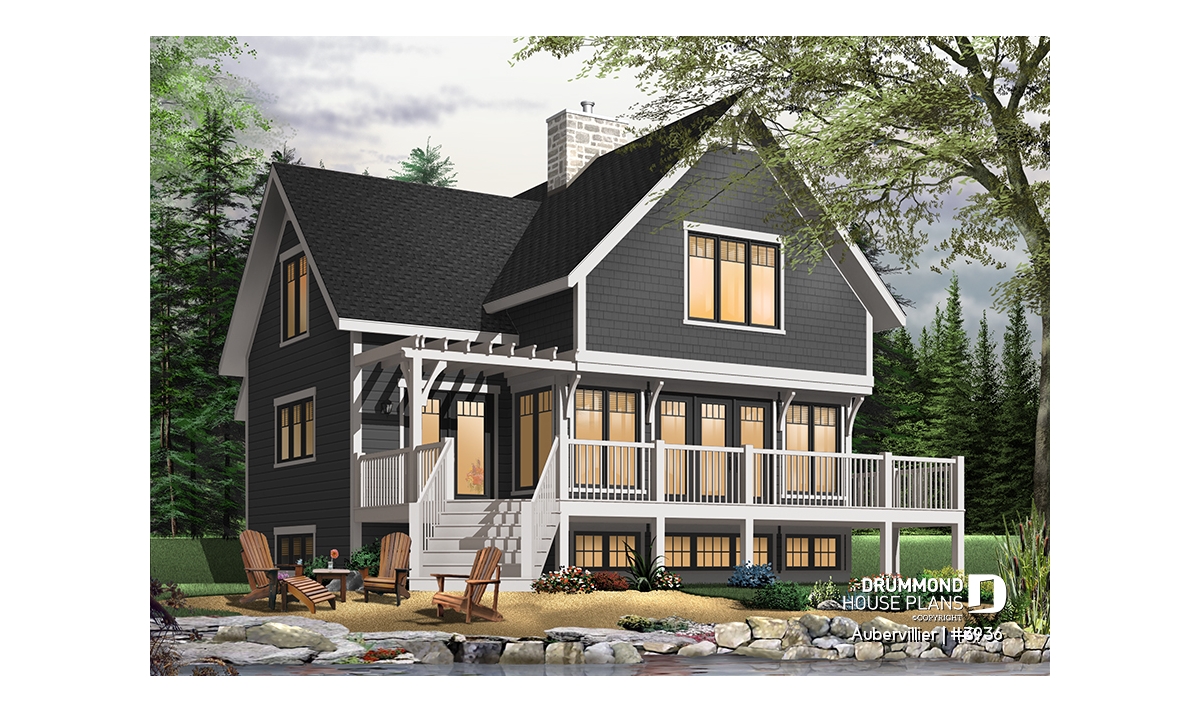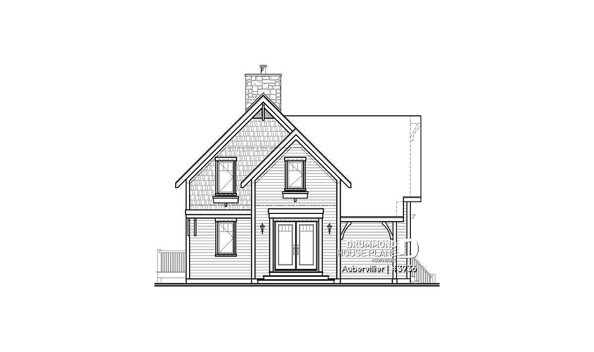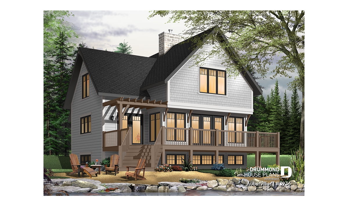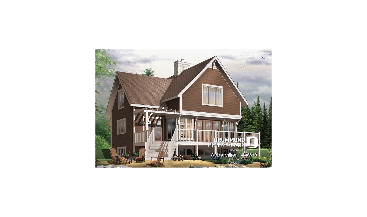Color version 2 - Rear - Great 3 bedroom transitional style cottage with open layout concept and fireplace, large deck - Aubervillier