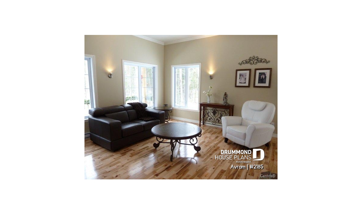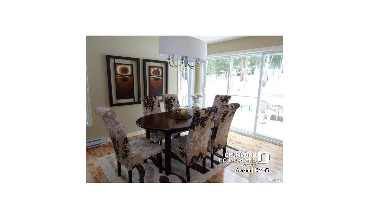 Ceiling at 10 feet in family room, windowed dining room, fireplace shared between family and dining rooms, large bathroom.