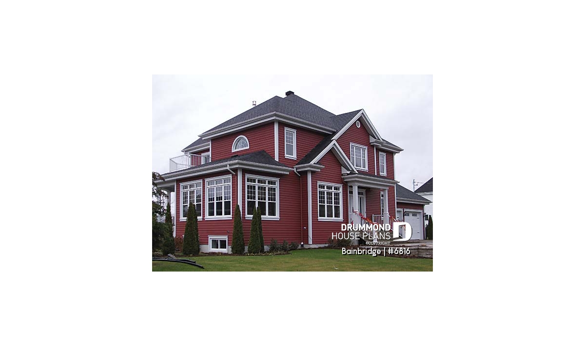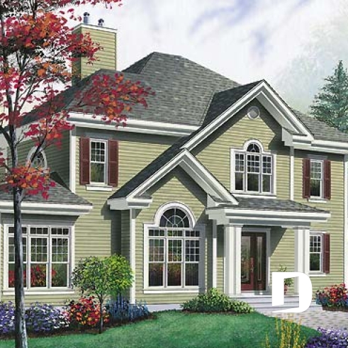 With its uncommonly elegant exterior, this house possesses many features worthy of mention. Whether it be the two-car garage which is in perfect harmony with the rest of the house, or that beautiful solarium on the opposite façade which many will take pleasure in decorating in exotic fashion, without forgetting two rear terraces, one of which is accessible to the master bedroom, this model proposes many excellent interior features as well.