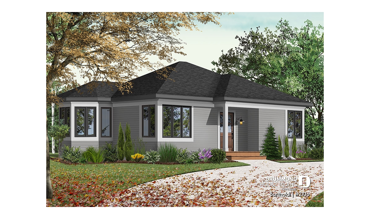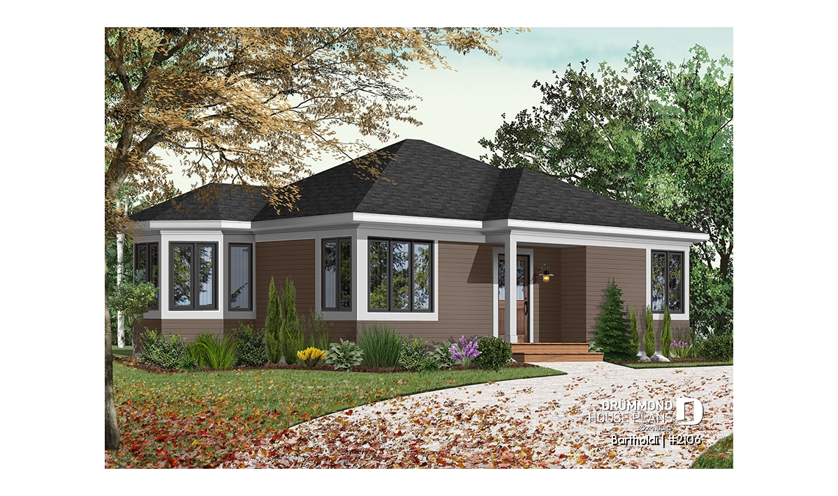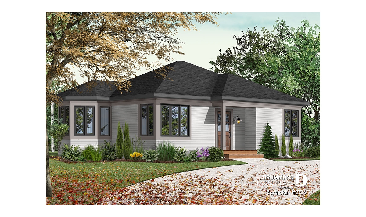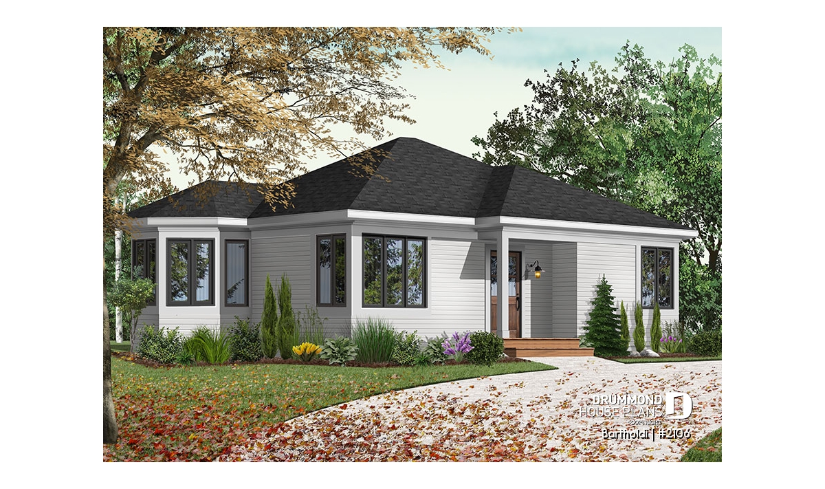 Charming 2 bedroom modern rustic one-storey house plan.