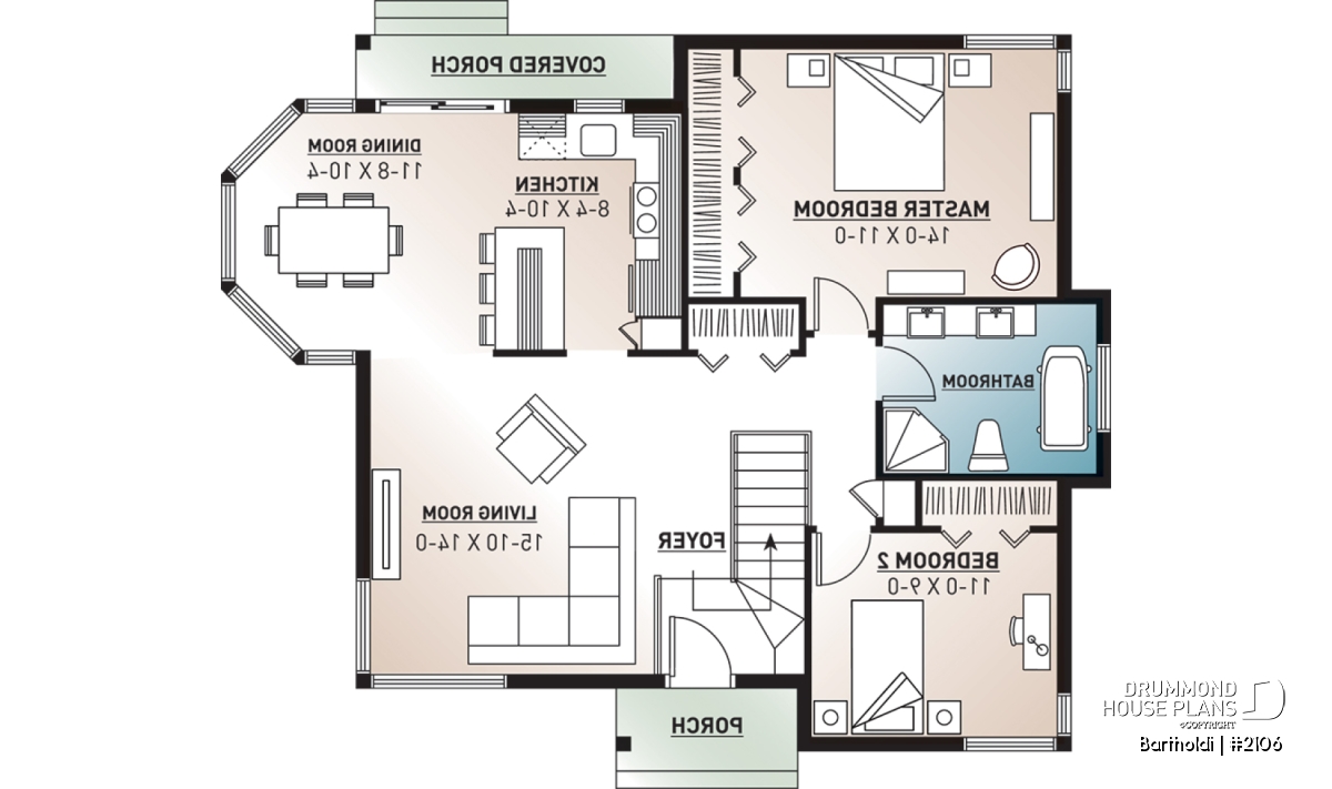 Covered front balcony and small rear terrace.