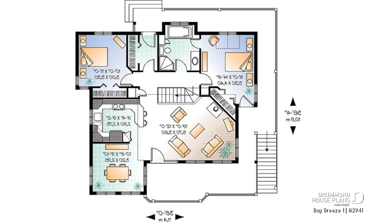 Two bedrooms share a four-fixture bath with the master bedroom enjoying private access. The master bedroom also opens to the deck.
