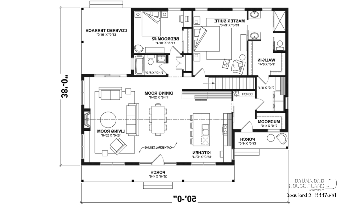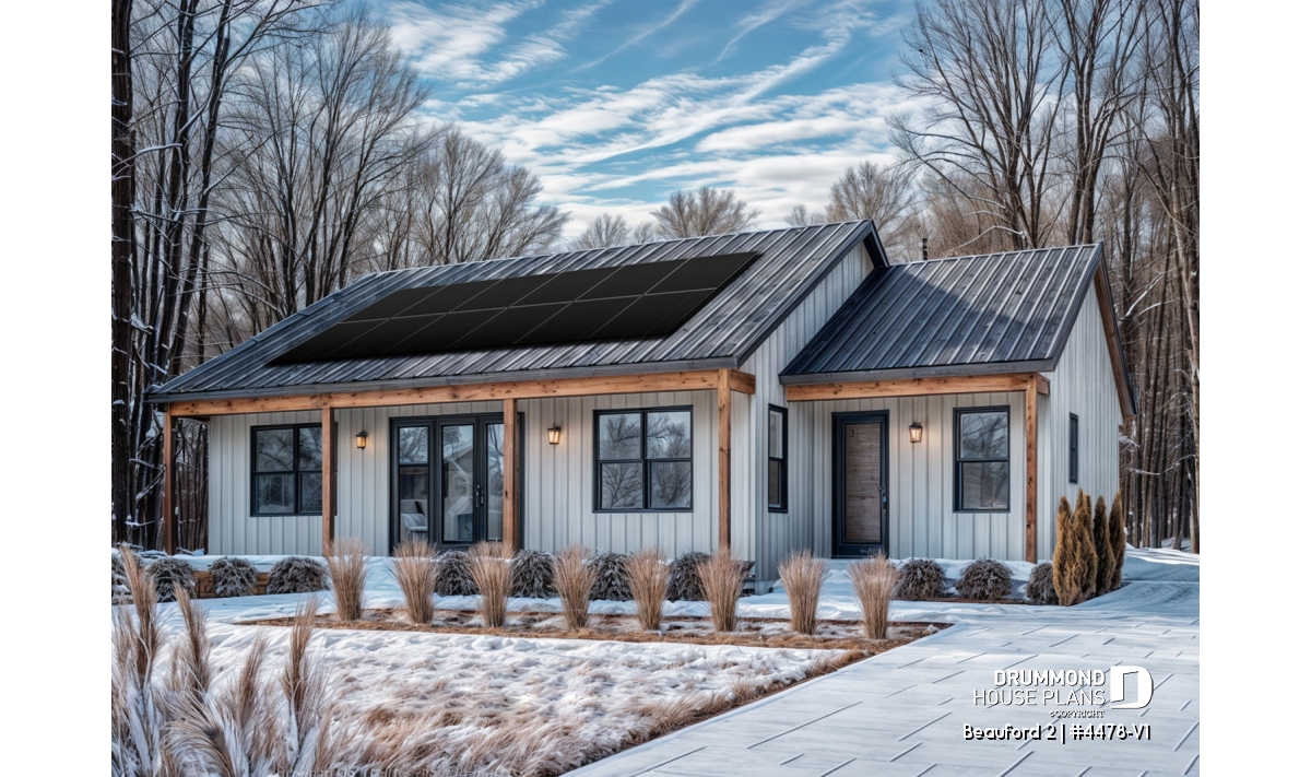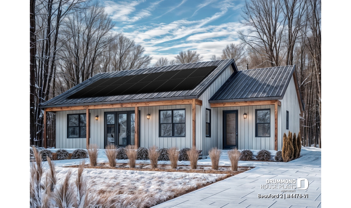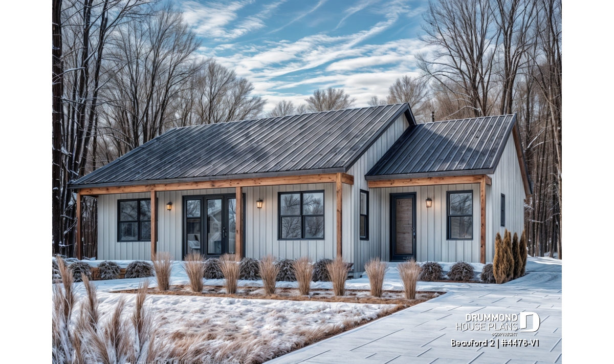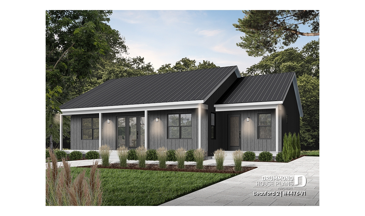 Modern 2 beds, 2 baths Country Ranch style house plan.